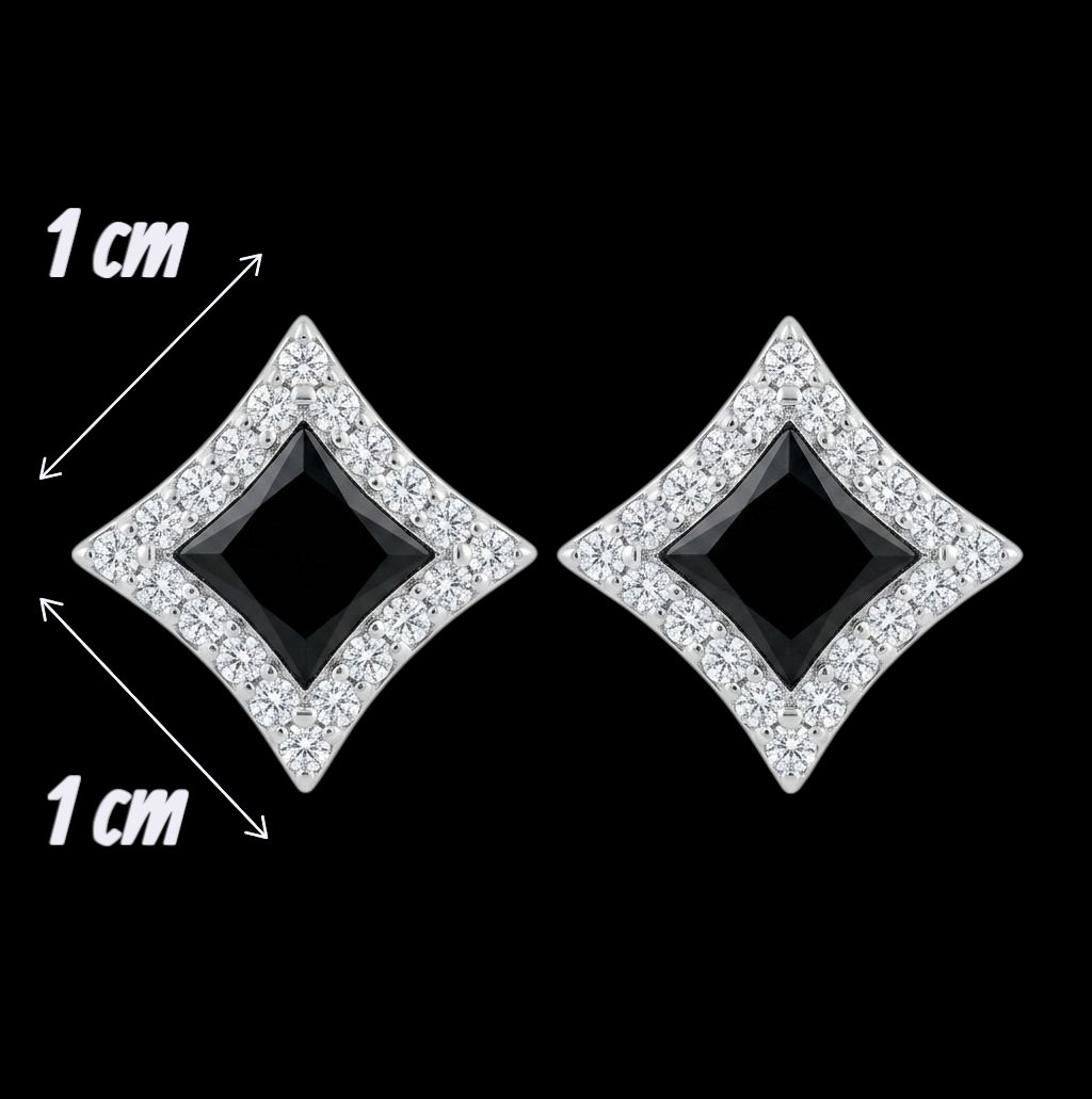 These black diamond shaped stud earrings are made of 925 sterling silver metal in great polish and rhodium plated which is 100% lead free, nickel free and hypoallergenic for sensitive ears. The square cz stud earrings will not cause allergies despite how long you wear. Flat and smooth bottom design makes earrings lie flat on your ears. Comfortable and light.