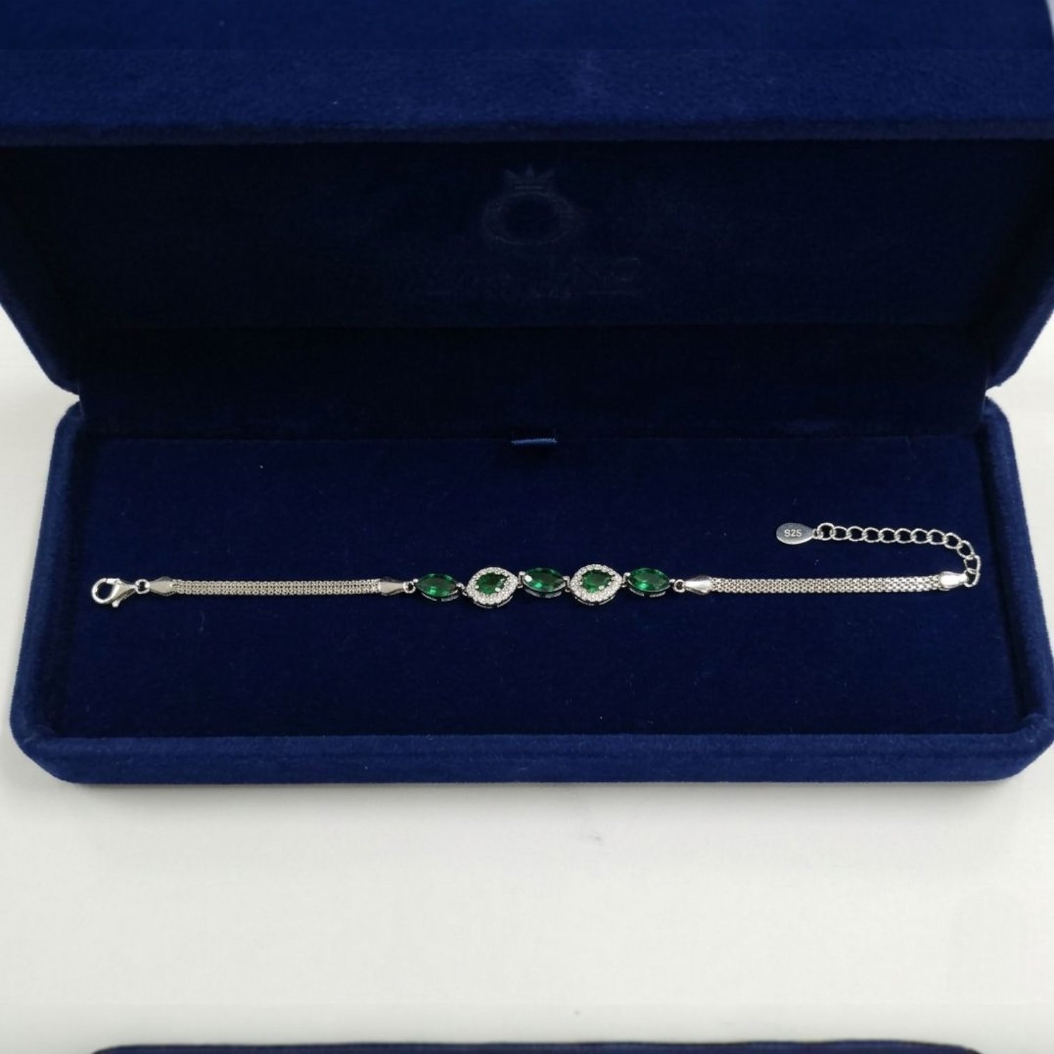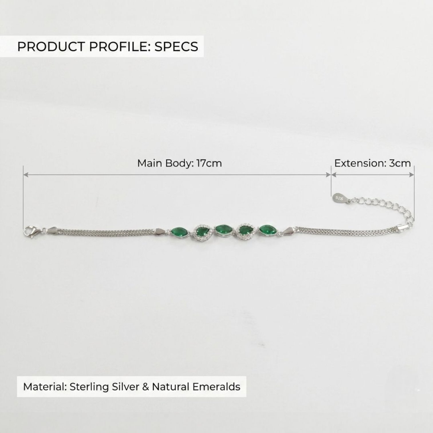 Elevate your style and embrace good vibes with this exquisite sterling silver Natural Emeralds bracelet!
