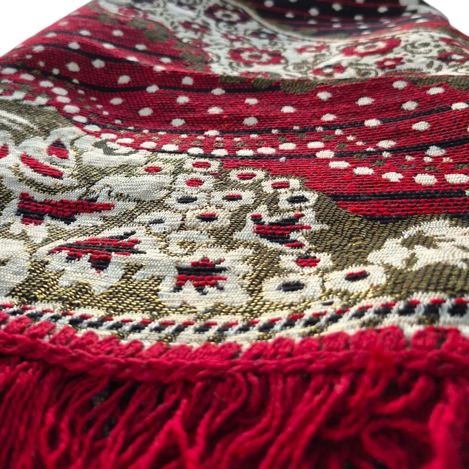 The deep ruby base is elevated with soft ivory and subtle gold accents, offering a luxurious palette that complements both modern and classic interiors. Finely finished fringed edges and precise detailing reflect the craftsmanship behind every weave, making this rug as refined as it is enduring.