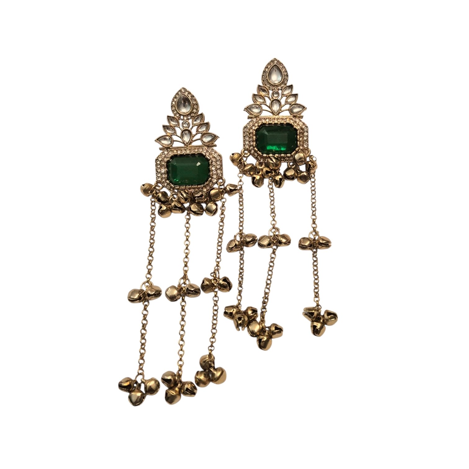 Aura Party Wear Ghunghroo Earrings – Green