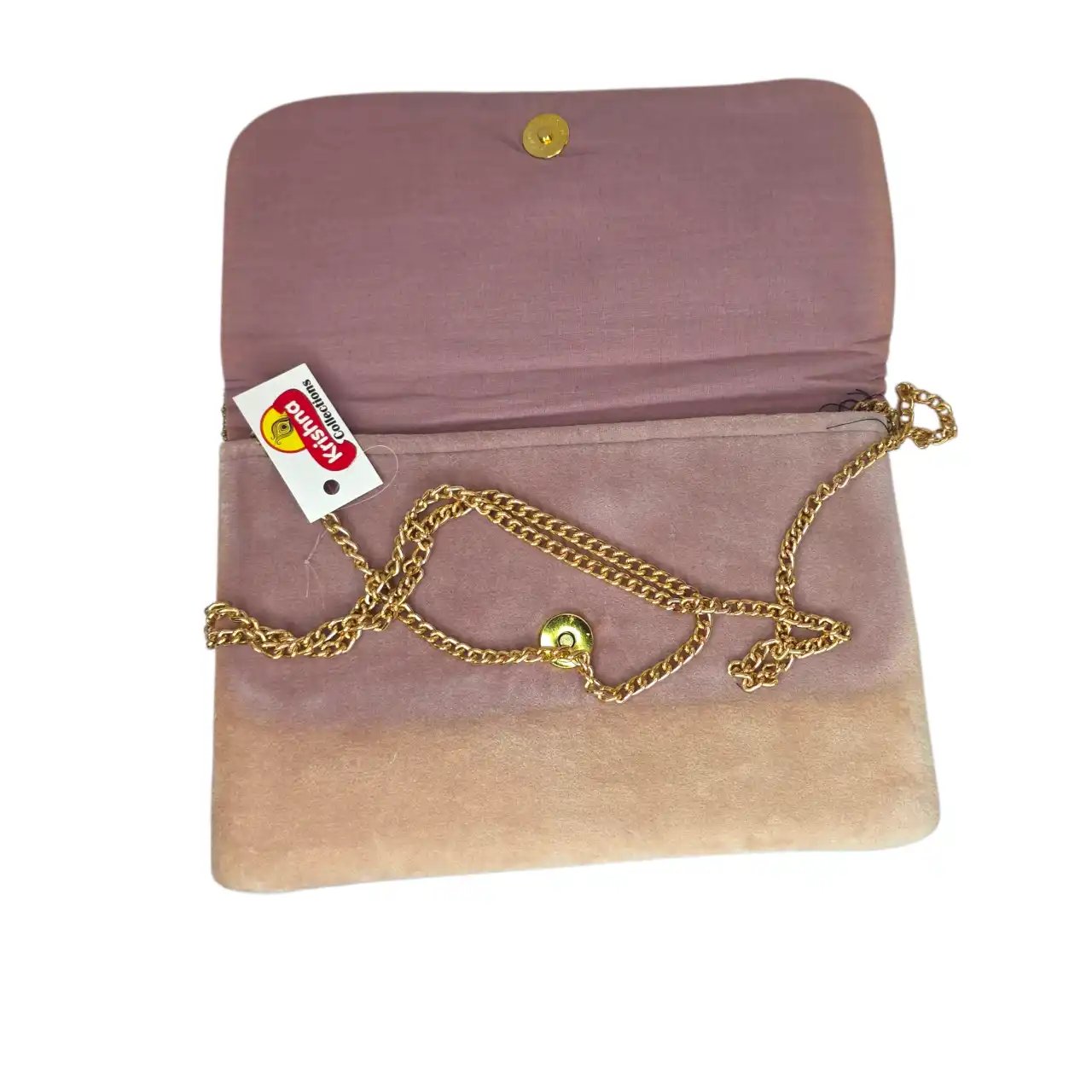 Designed to be worn as a clutch or as a crossbody sling, it features a sleek metal chain strap that elevates both casual and evening outfits. The interior is thoughtfully finished with a soft cotton lining, an inner pocket for essentials, and a secure magnetic closure to keep your belongings safe.