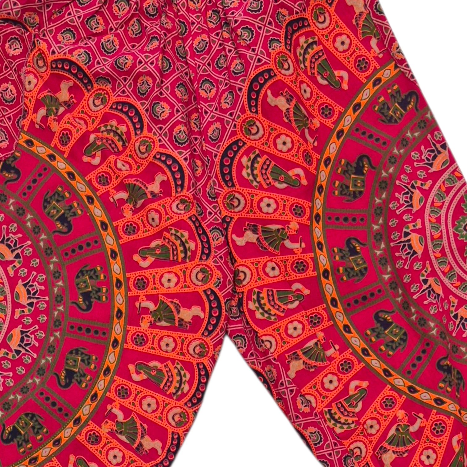 - Design: These feature a loose, baggy fit with a low crotch and is decorated with vibrant, printed motifs like mandalas, elephants, or floral patterns.