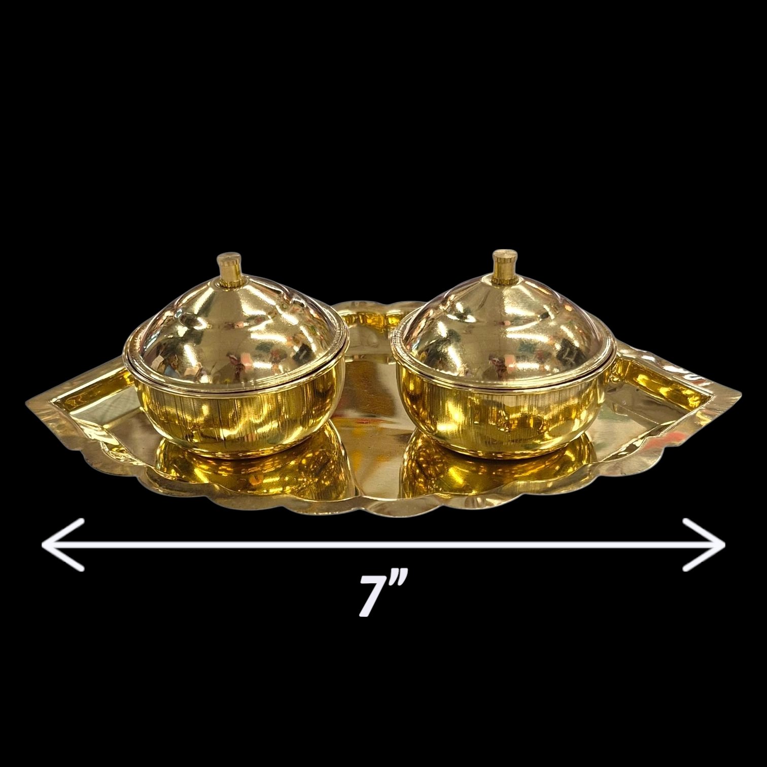 Brass Haldi Kumkum Barni (or Bharani/Dabbi/Box) is a traditional Indian container, used to hold turmeric (haldi) and vermilion (kumkum) powder for religious ceremonies, especially the Haldi Kumkum social gathering where married women exchange these symbolic powders, exchanging gifts like small containers (barnis) filled with haldi and kumkum as tokens of good fortune and togetherness.