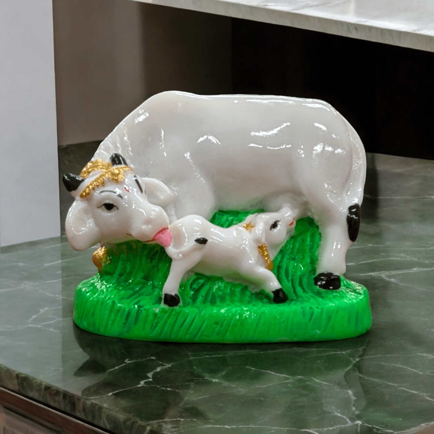 This Kamdhenu Cow with calf Showpieces Placed in North East Direction of Drawing, Living or Pooja Room ,it brings Wealth ,Health ,Peace and Happiness. This is a very popular gift item for any occasion.