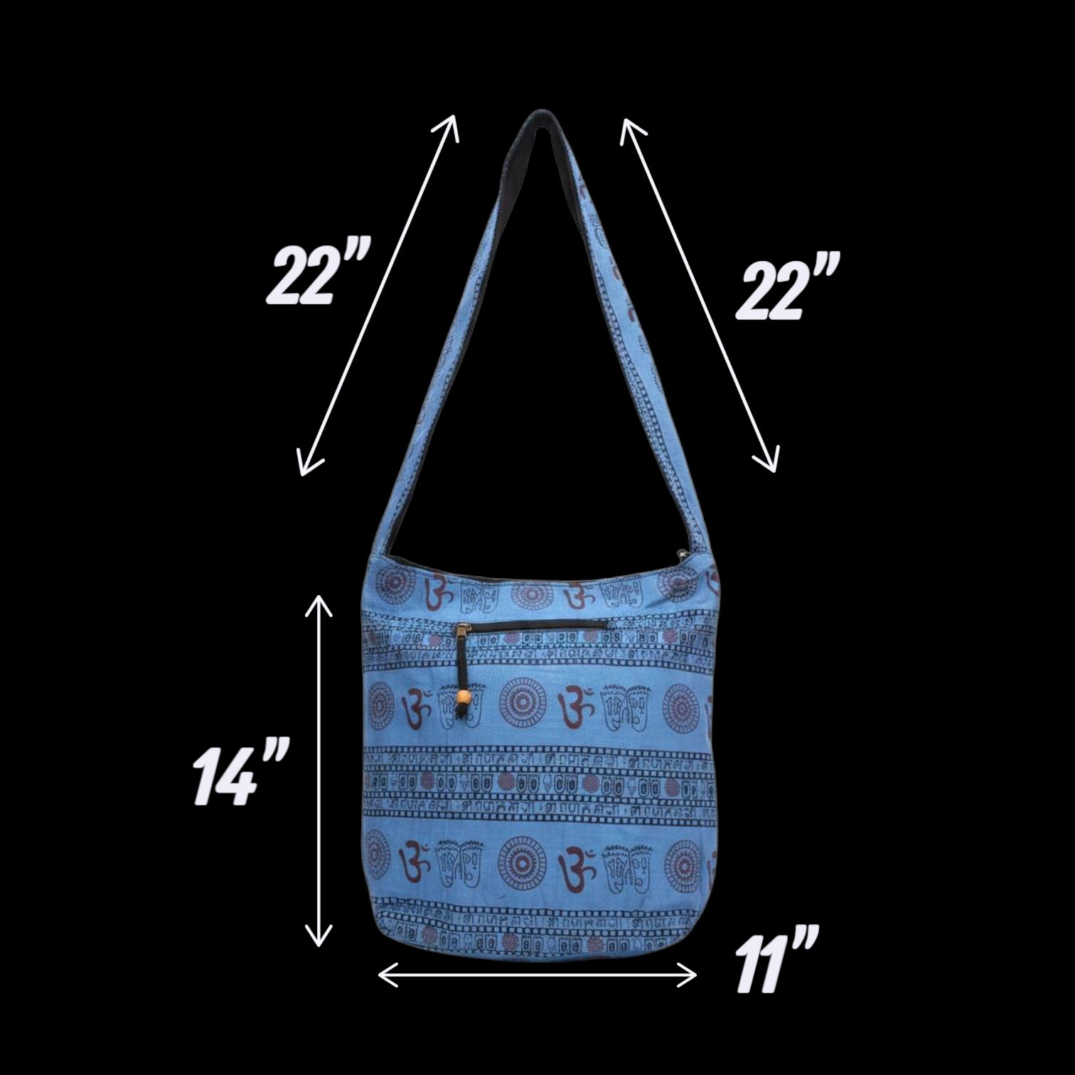 Made from 100% high-quality cotton, this sling bag is designed for superior comfort and durability. The symbolic ‘Om’ print adds a spiritual and cultural touch, making it unique and effortlessly elegant. Its soft cotton lining inside ensures secure and snug storage for all your essentials with zipper on the top and also on the outside pocket.
