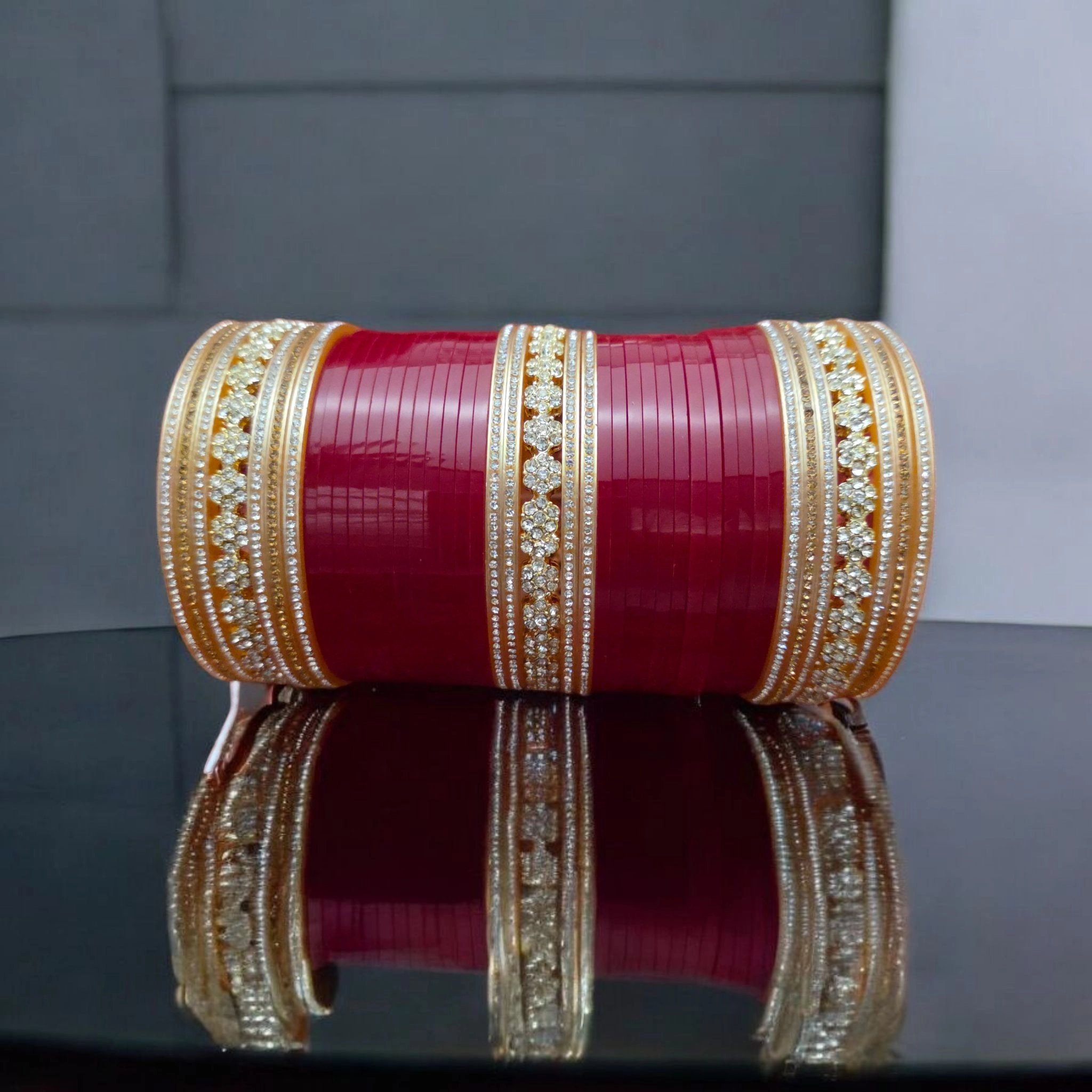 Our Chura’s are meticulously crafted to adorn brides with grace and beauty on their special day. Each set is a testament to the rich cultural heritage and timeless craftsmanship that goes into creating these exquisite pieces of jewelry. Our bangles are crafted by skilled artisans who have honed their craft over generations. Each piece is a work of art, reflecting intricate designs and impeccable detailing. Made with the finest materials, our Wedding chura bangles are durable and designed to last. The vibrant colors and intricate embellishments are sure to make a statement.