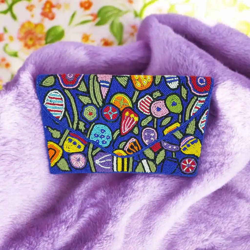 Add a touch of handcrafted elegance to your look with this Blue Envelope Clutch with Colorful beadwork, a beautifully detailed accessory designed for both style and versatility. Carefully handmade with subtle bead embellishments, this purse blends traditional craftsmanship with a modern silhouette.