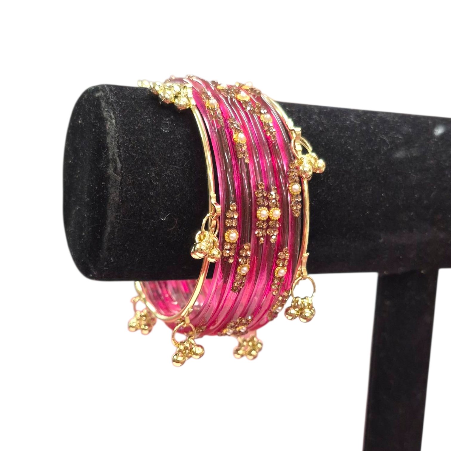 Kashmiri Ghungroo Bangles with Pearl & Stone Accents Glass Bangles – Pink