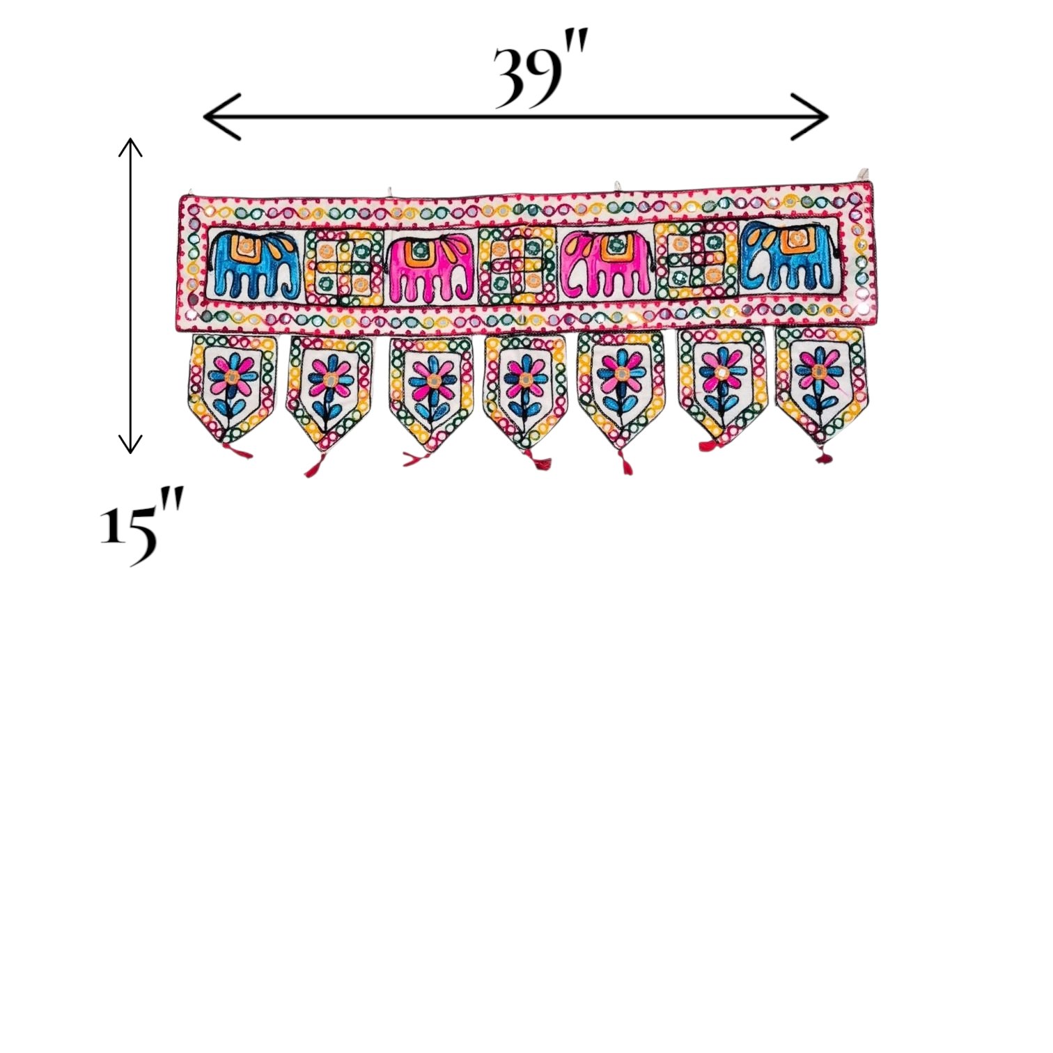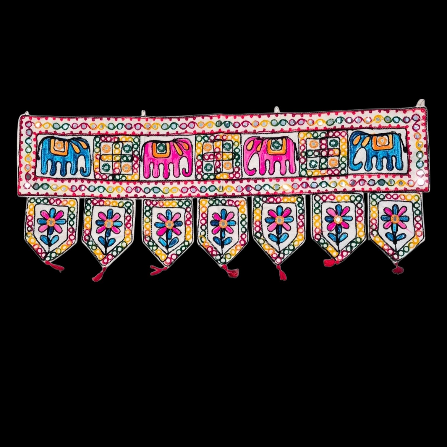 Traditional embroidered door hangings, also known as Torans or Bandhanwars, are significant in Indian culture for welcoming positive energy and warding off negativity. These decorative pieces are handmade and feature intricate hand-embroidery, mirror work, and ethnic motifs.