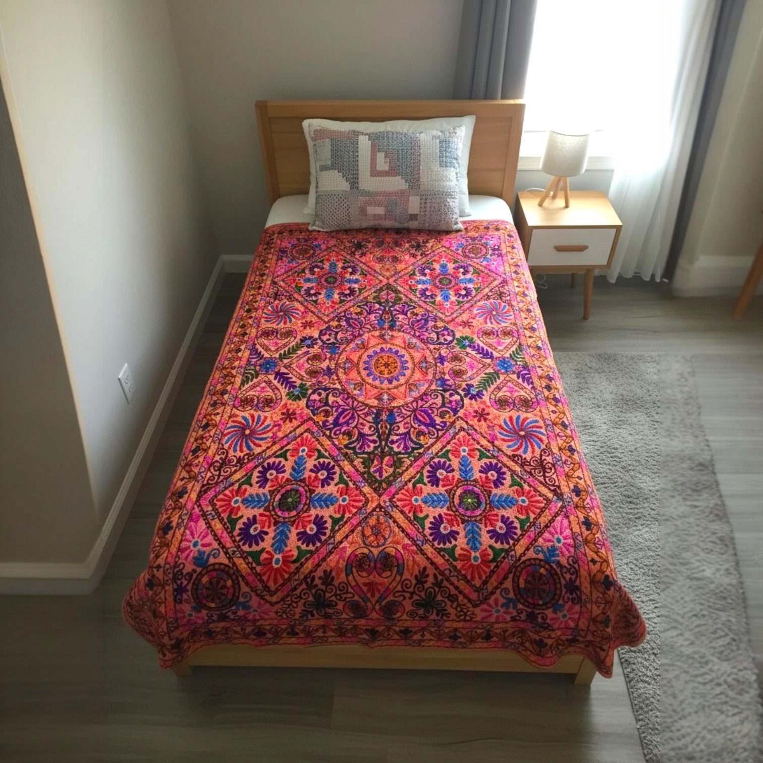 This tapestry serves multiple purposes—it can be used as a stunning wall hanging to create a warm ambiance, a stylish dining table cover for a cozy meal setting, or a comfortable single bed cover for your personal retreat.