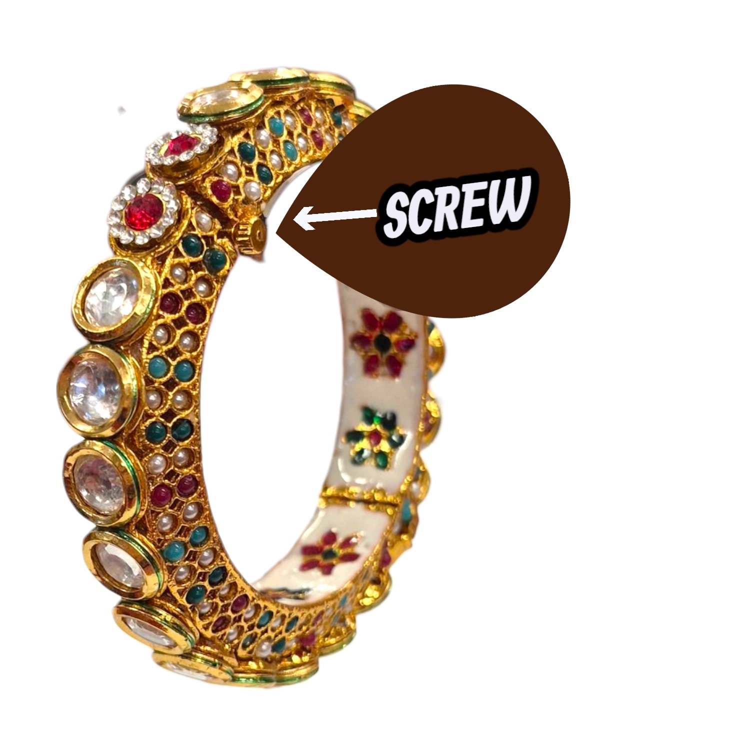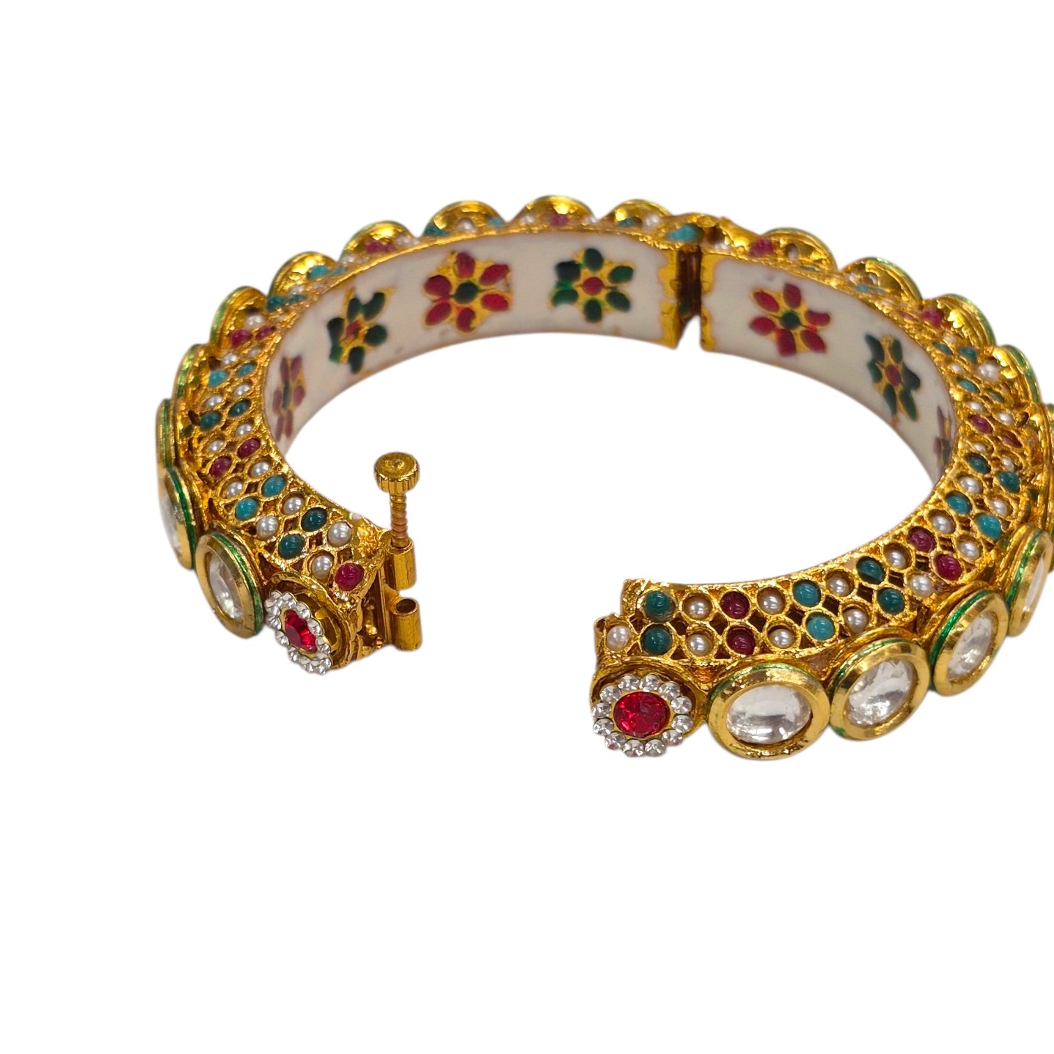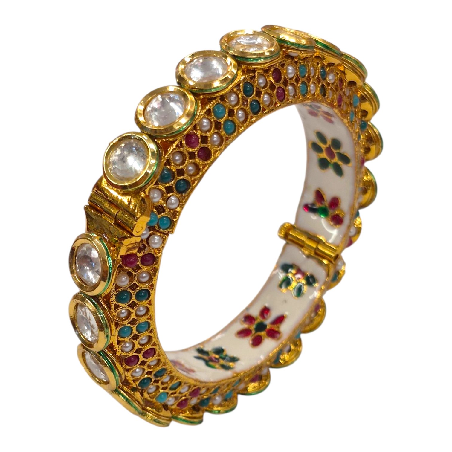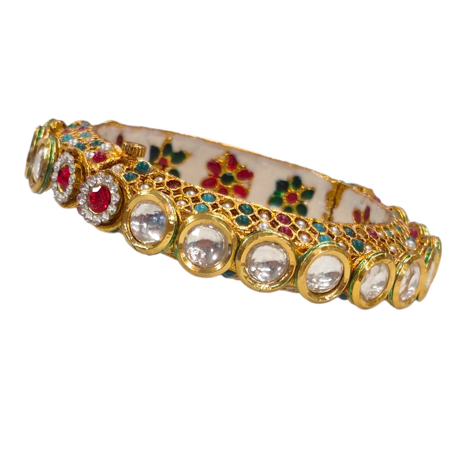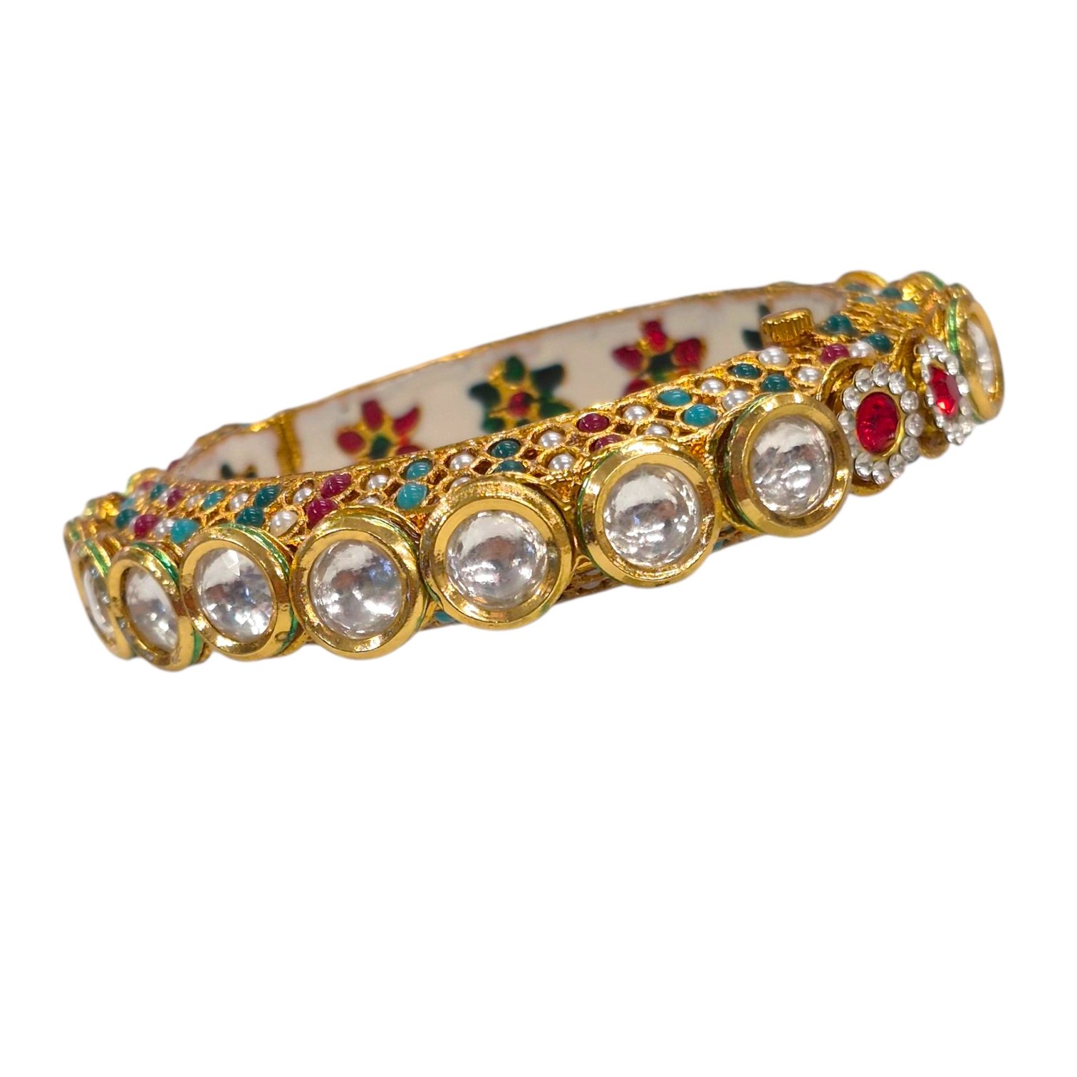 Navratna Bangle | Gold Finish Kundan stone Statement Kada