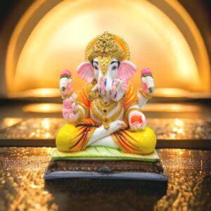 Buy this beautiful Ganesha Idol in which Lord Ganesh who is the god of prosperity is holding the bahi khata (account books), this type of Statue is perfect Gift for Business location. It is said when lord Ganesha manage your accounts they bring the best of prosperity with him,