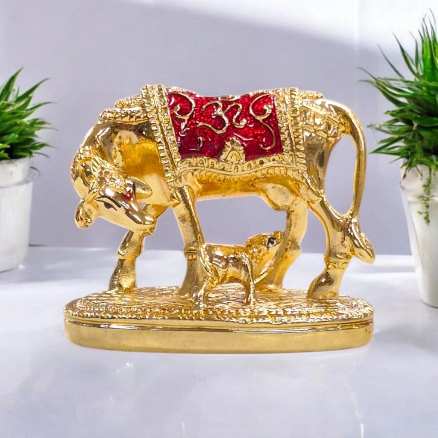 Gold Plated Kamdhenu Idol – Cow and Calf