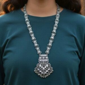 Whether paired with a silk saree, lehenga, or traditional ethnic attire, this temple necklace set adds grace, devotion, and grandeur to any ensemble. A perfect choice for brides, devotees, and lovers of traditional Indian jewelry.