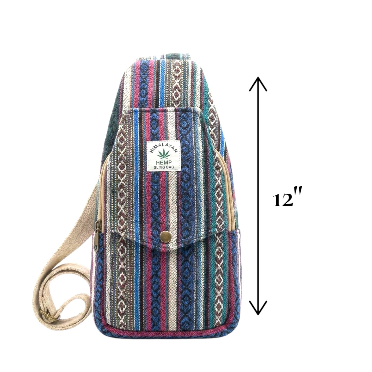 Model images are for reference only, Hemp shoulder bags with dimensions of approximately 12″ x 6″ are artisan-made products. These unisex bags features the two zippered compartments and a tic-button front flap.