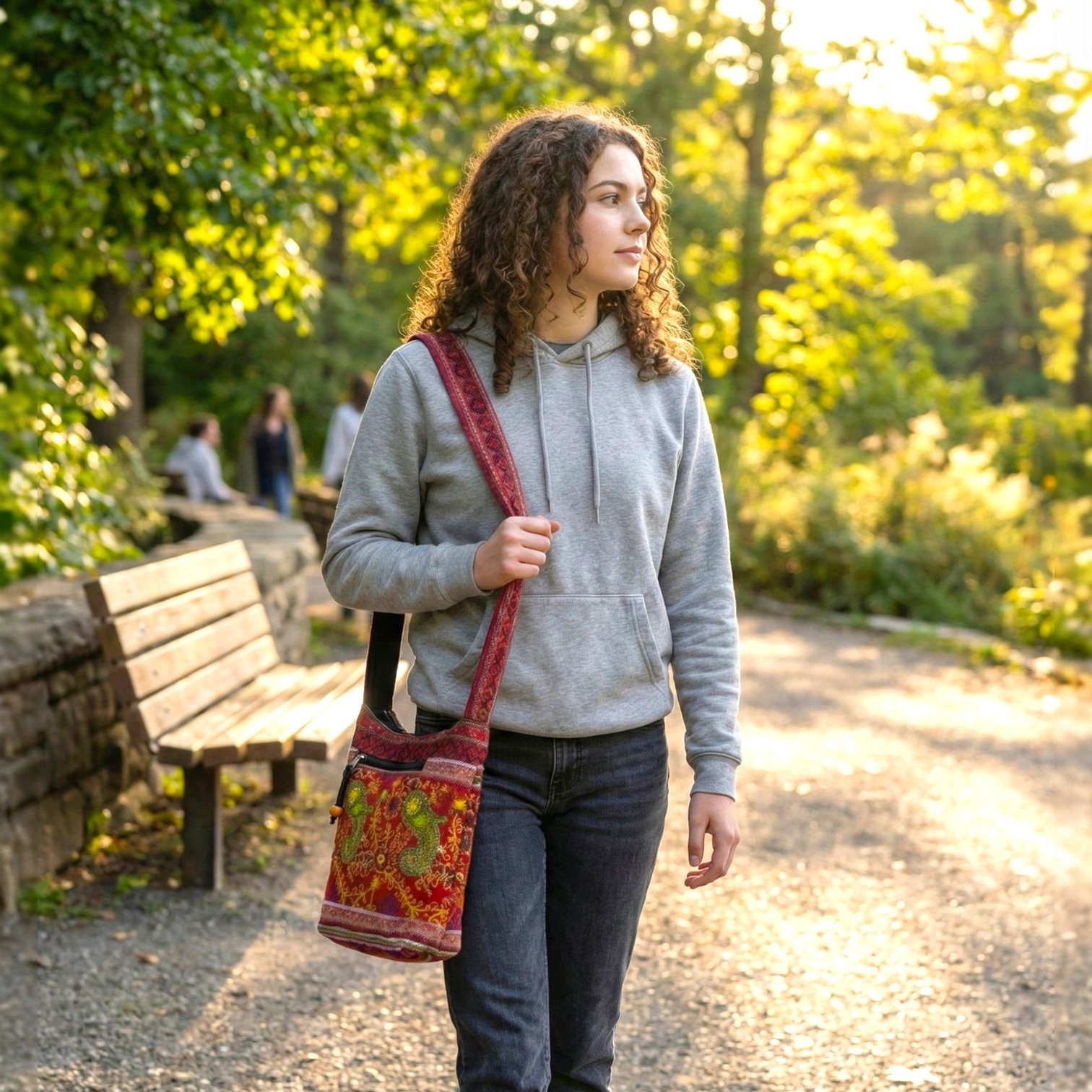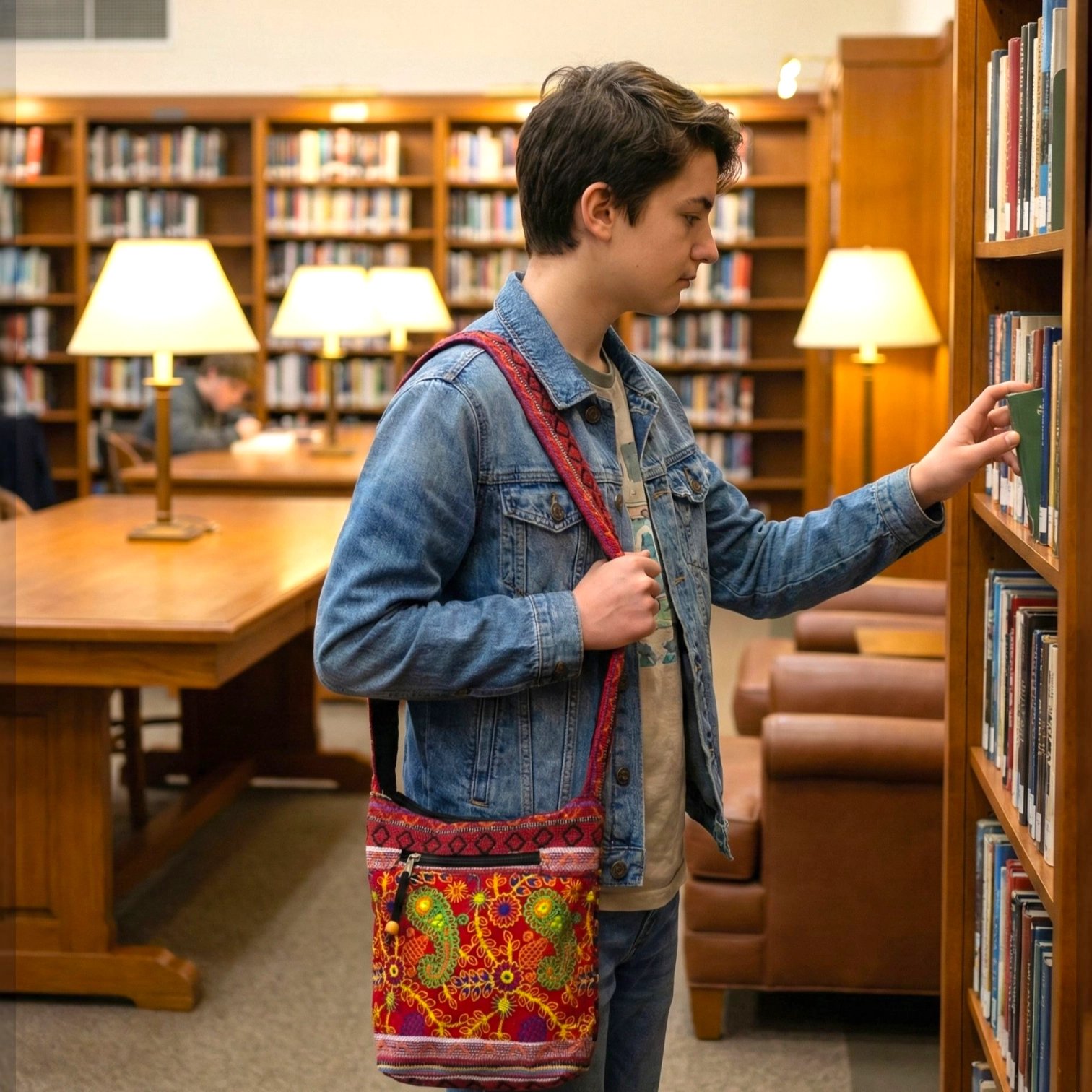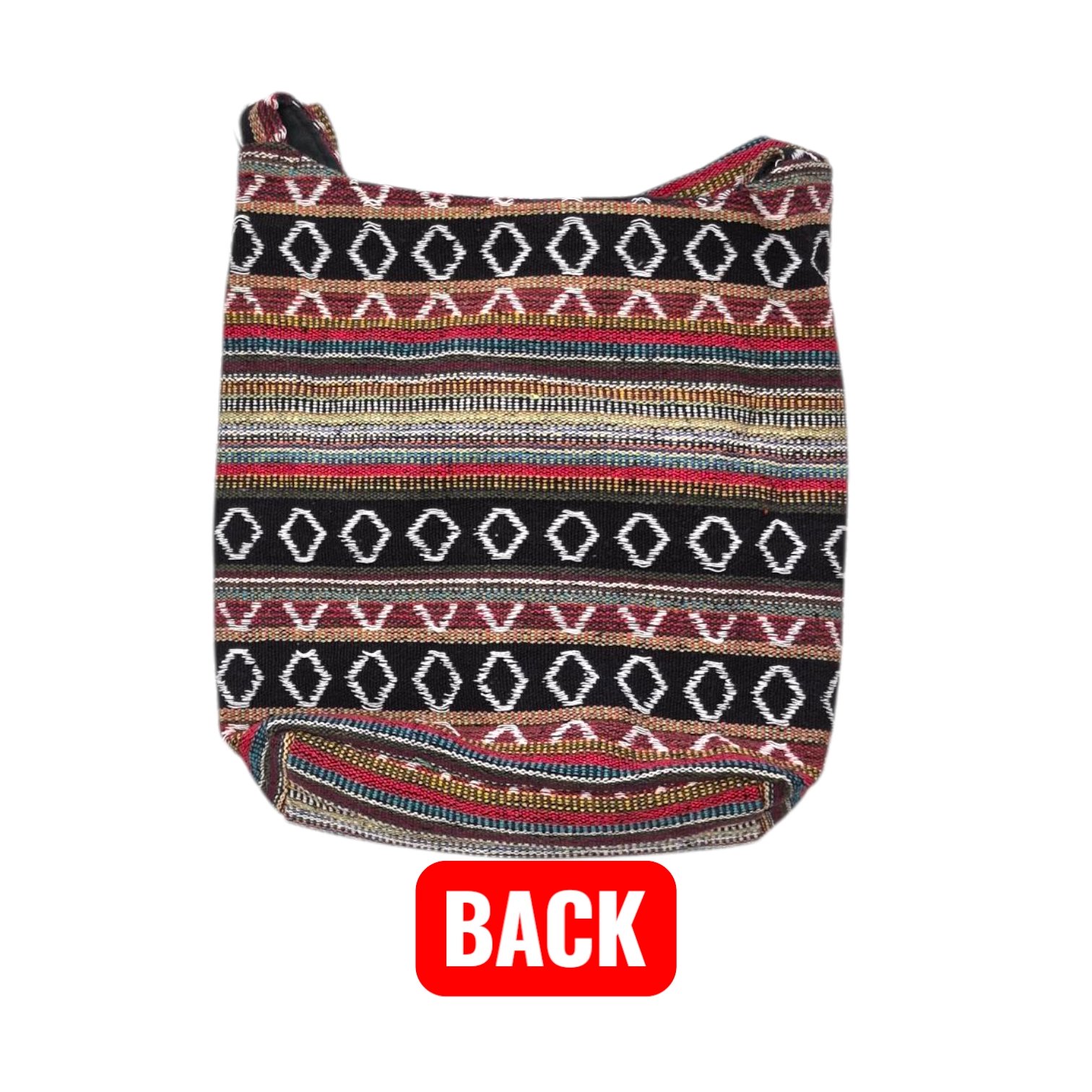 Jacquard Sling / Cross body bags with lining inside for durability, zipper on the top and on inside pocket also.
