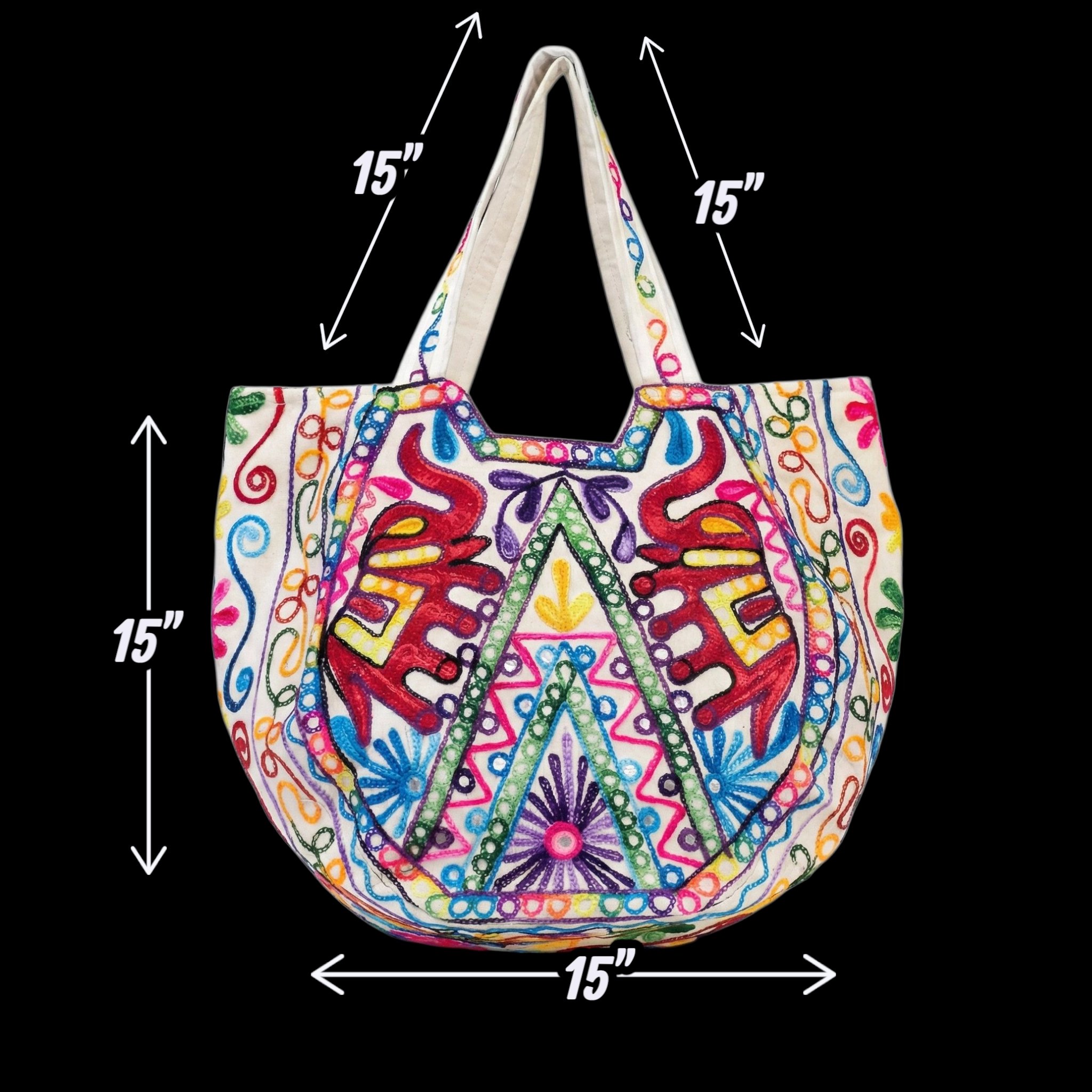 Fit Type: regular -2 red elephants embroidery. Traditional Kashmiri design – Can carry by hand or shoulder.