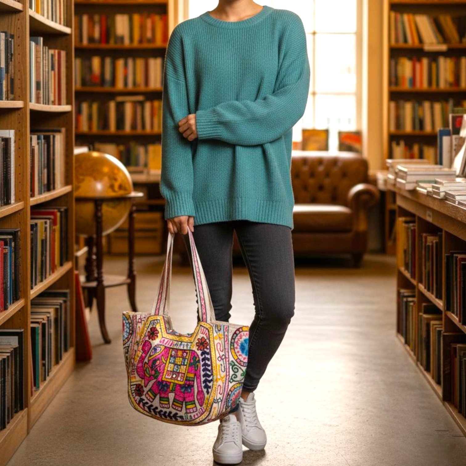 Fit Type: regular -Pink elephant embroidery. Traditional Kashmiri design – Can carry by hand or shoulder.