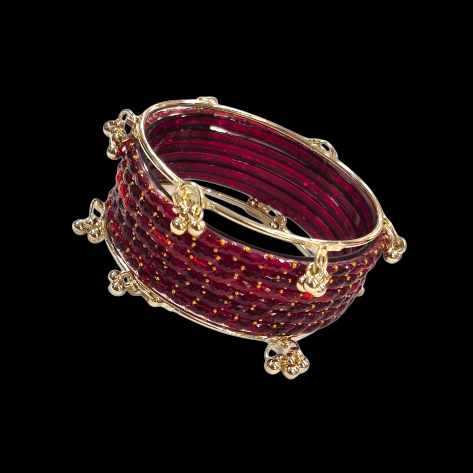 Kashmiri Ghungroo Bangles with Raindrop Glass Bangles – Maroon