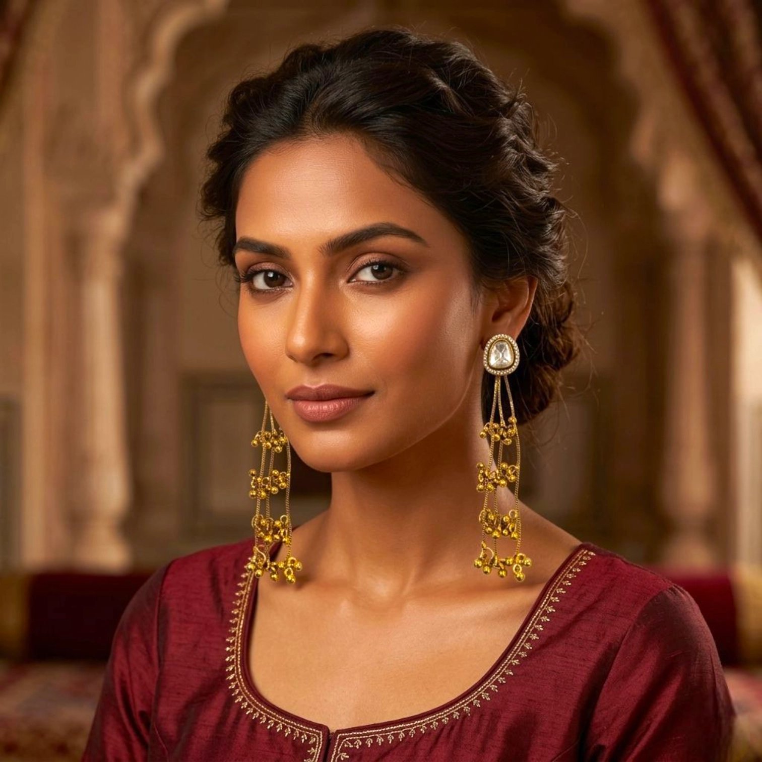 Whether paired with a saree, kurta set, or fusion outfit, the Kashmiri Ghungroo Earrings bring a subtle statement of heritage and sophistication to your look.