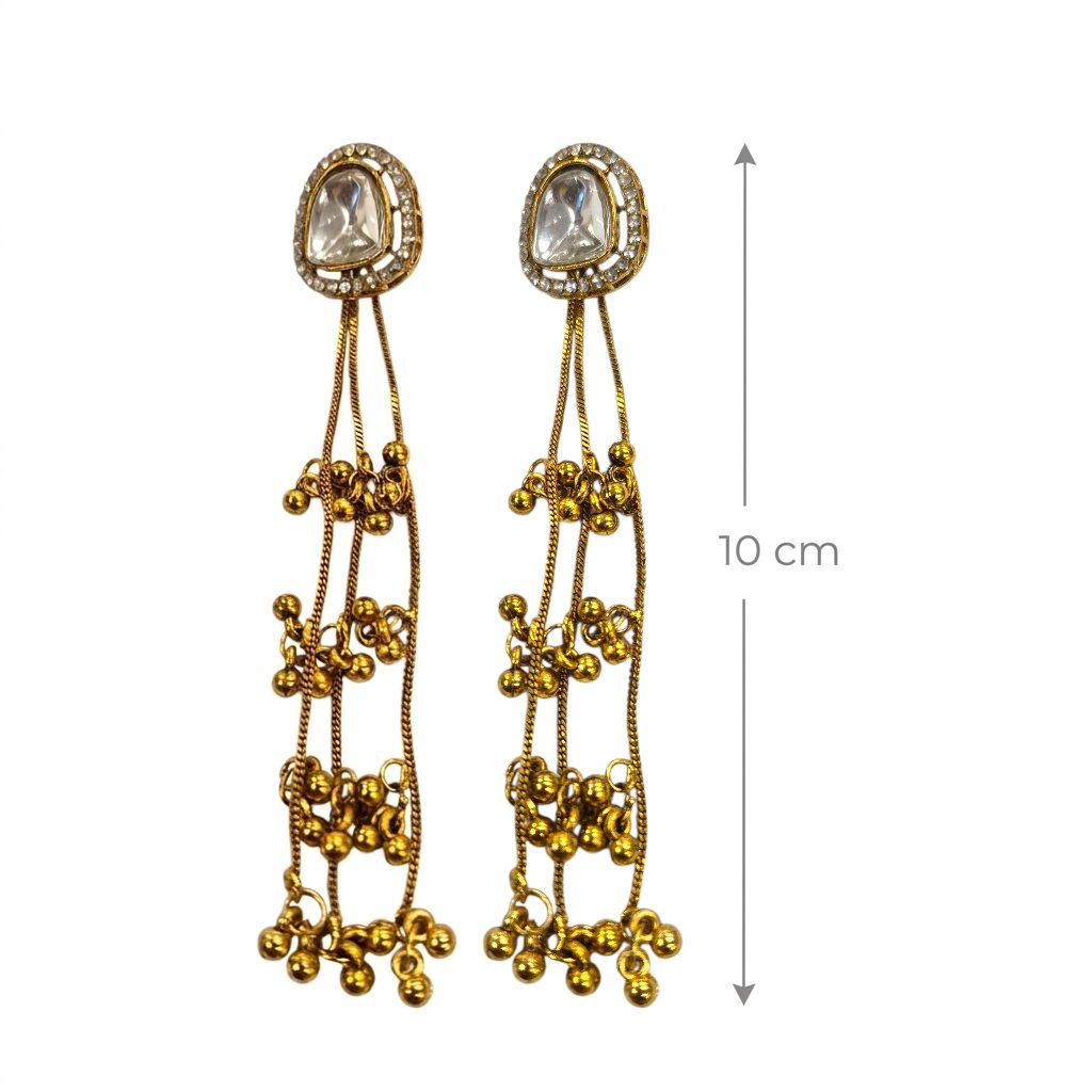 The delicate ghungroo elements create a graceful, layered look that reflects timeless Indian craftsmanship while remaining versatile enough for modern styling. Lightweight and elegant, these earrings are perfect for festive occasions, weddings, cultural celebrations, or elevating everyday ethnic wear.