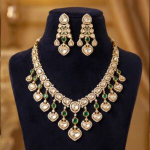 Designed to pair seamlessly with sarees, lehengas, anarkalis, or even contemporary fusion outfits, this Kundan necklace set adds heritage charm with a modern, wearable appeal.