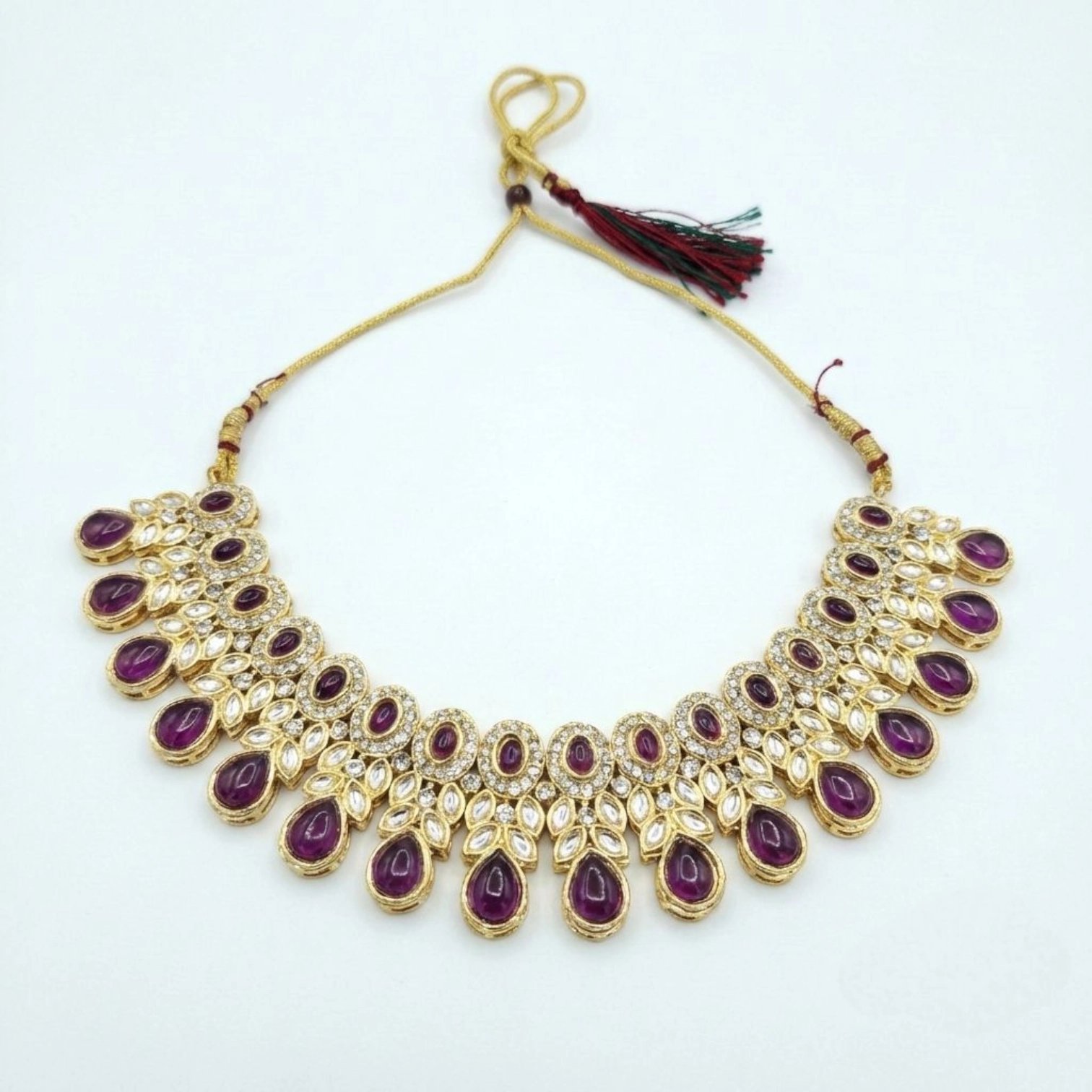 Shop this Kundan necklace Set – a Indian jewellery masterpiece with matching earrings and Maang Tikka. Perfect bridal & festive jewellery for weddings, mehndi, and special occasions in Canada-USA. Elegant necklace set with timeless Kundan craftsmanship.