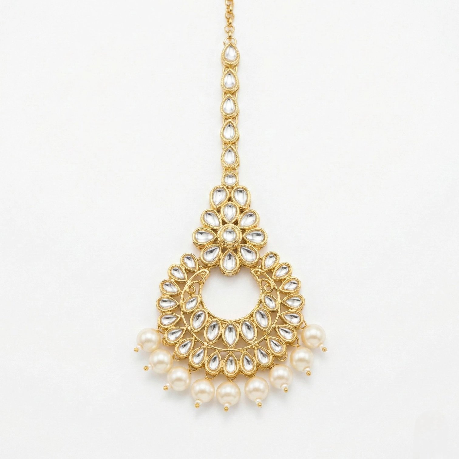 Maang Tikka – White | Kundan Stone Work