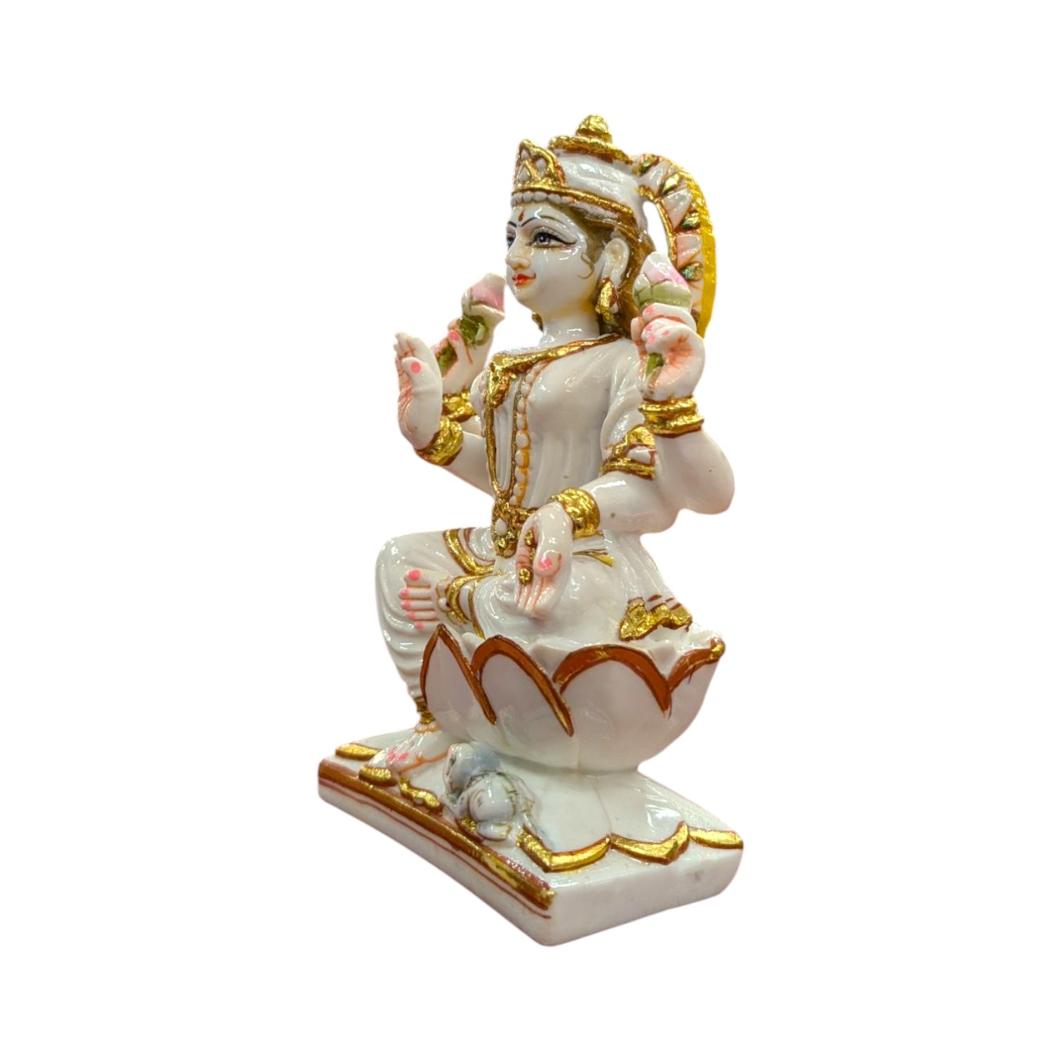 Buy this beautiful 9-inch Goddess Lakshmi idol crafted from durable composite marble with a stunning hand-colored marble-like finish. Perfect for your puja room, home decor, or gifting.