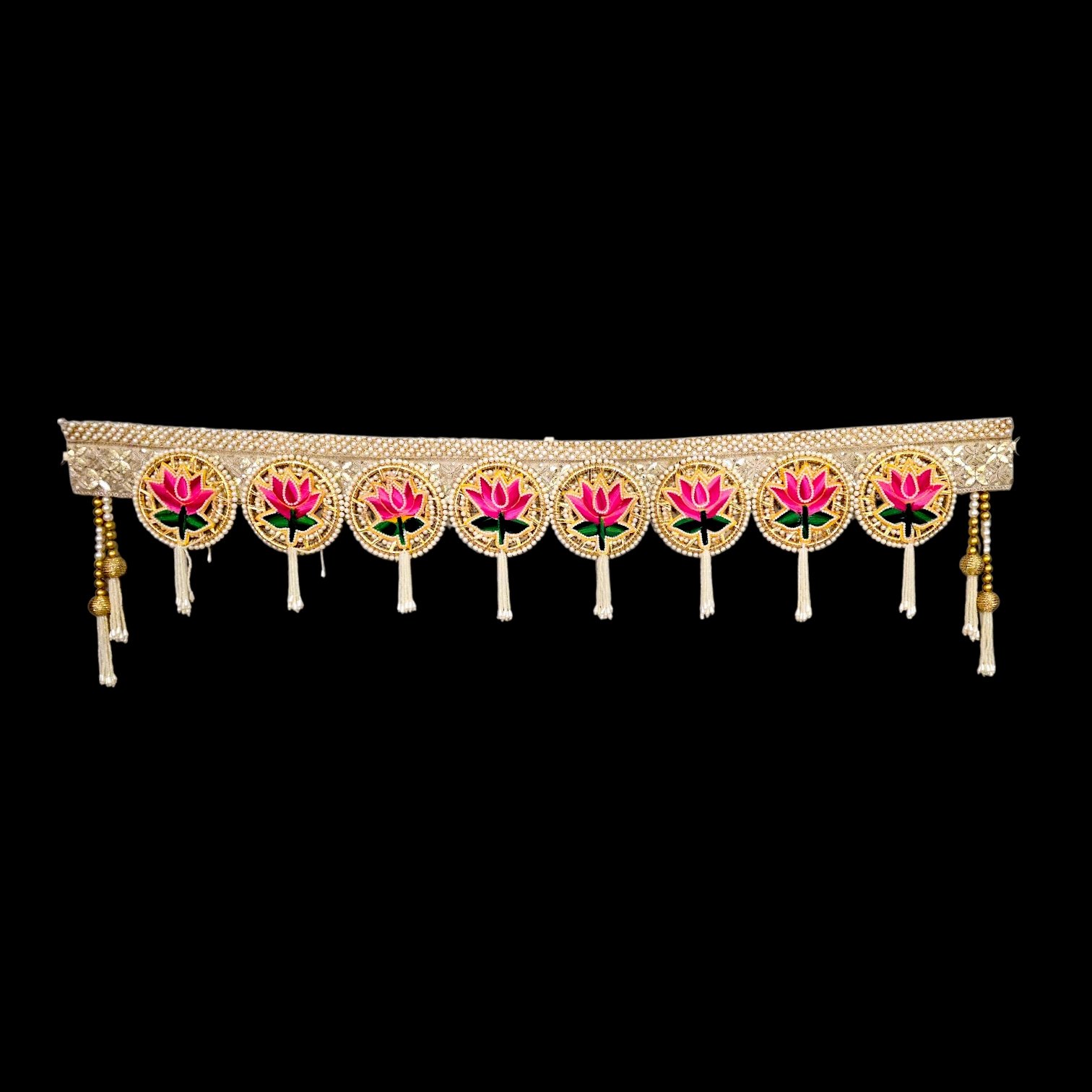 Get this beautiful Lotus toran with colorful Lotus motif created with small moti /pot beads and flower motif with moti tussles for your home décor this Diwali. This Toran for Diwali is a vibrant and decorative door hanging that exudes the spirit of the festival.
