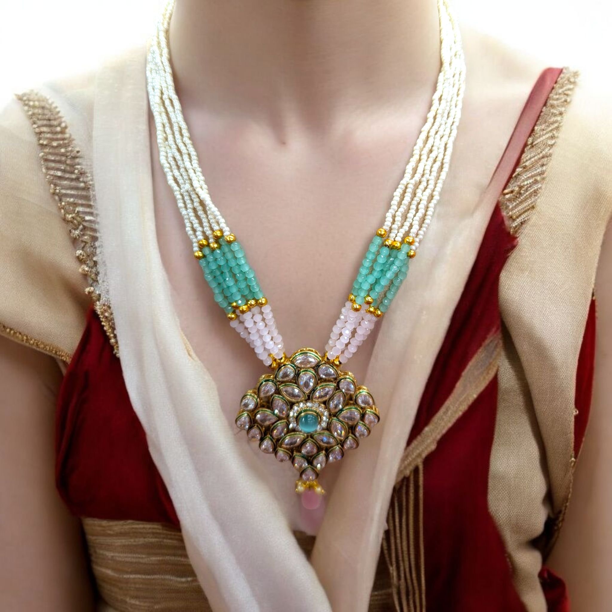 Maharani haar with earring | Semi Precious Necklace and Earring Set