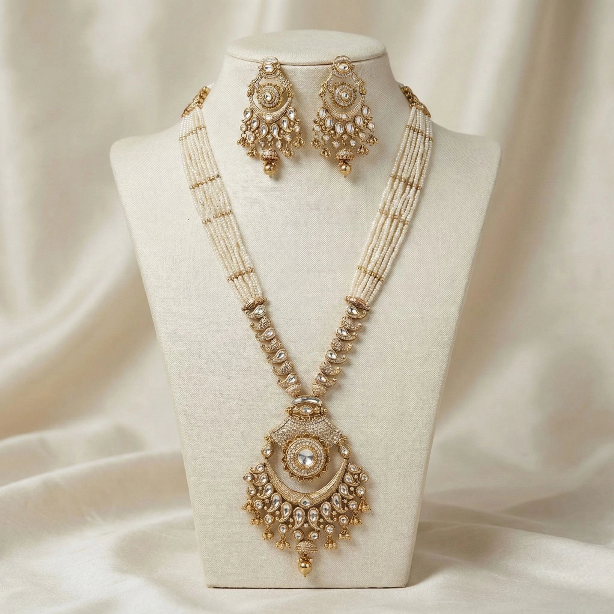 Maharani haar with earring | Semi Precious Necklace and Earring Set