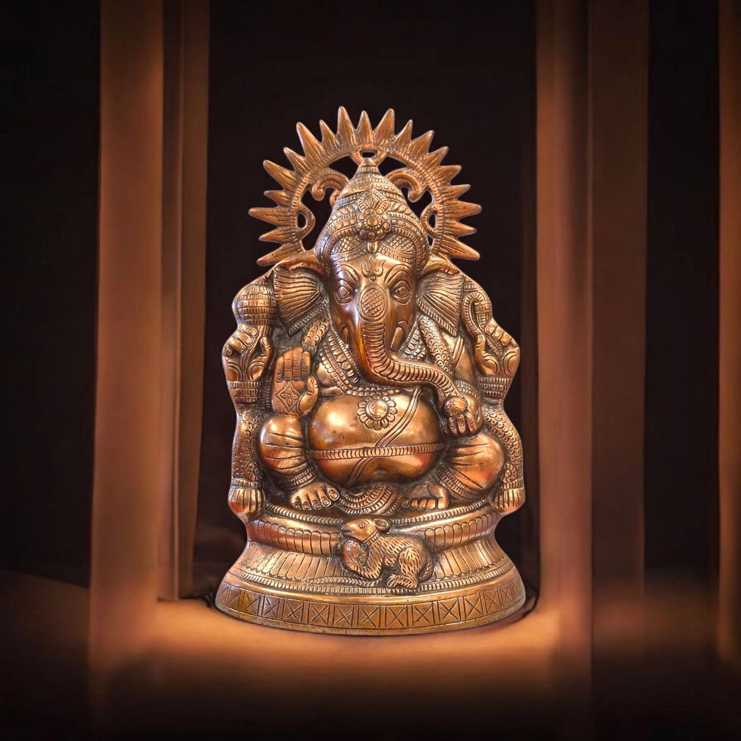 Metal Copper Ganesha Statue | 13.5 Inches