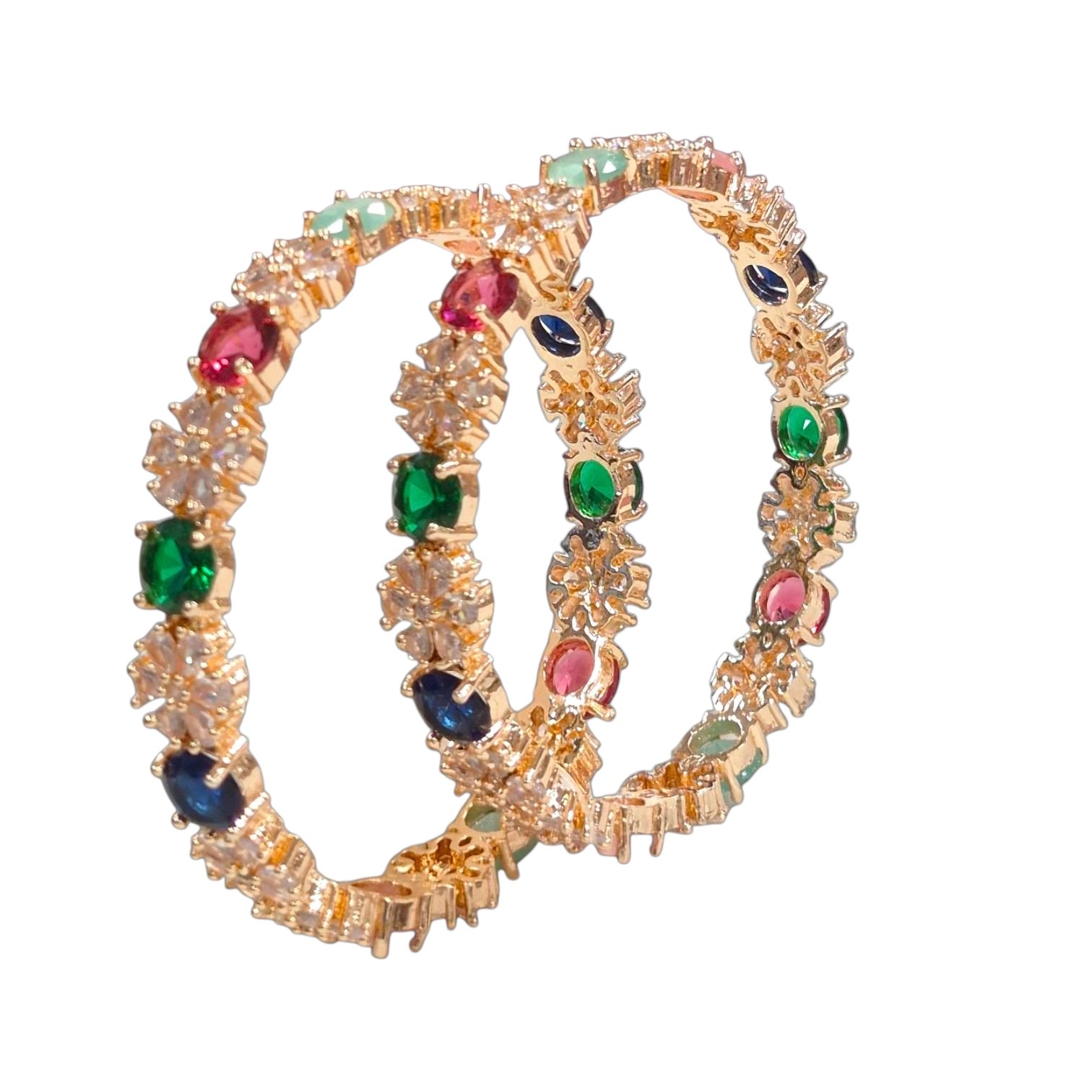 Swarnika Navratna Bangles Set – Rose Gold Finish Multicolor Statement Stone Bangles