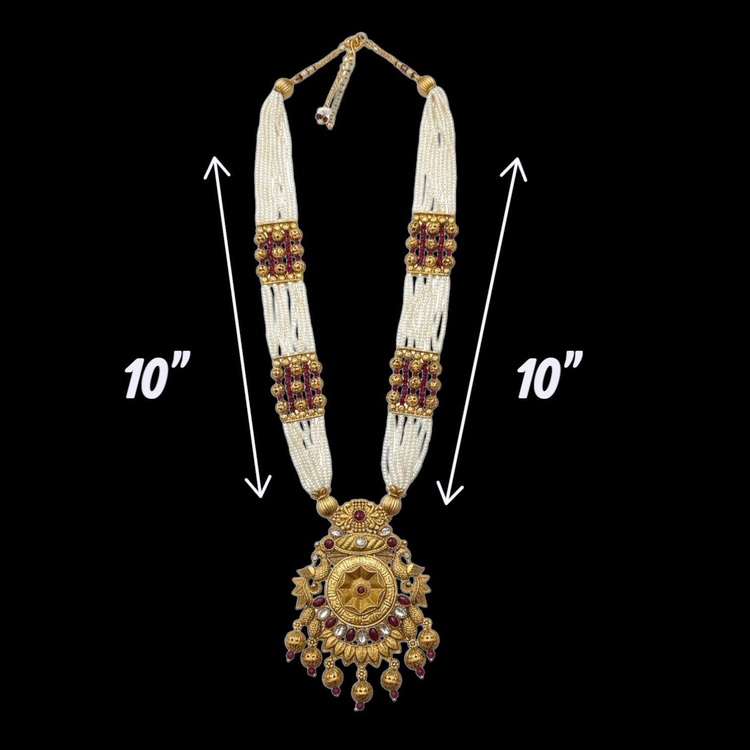 Golden Matt Necklace : 21 inches long with high quality white beads