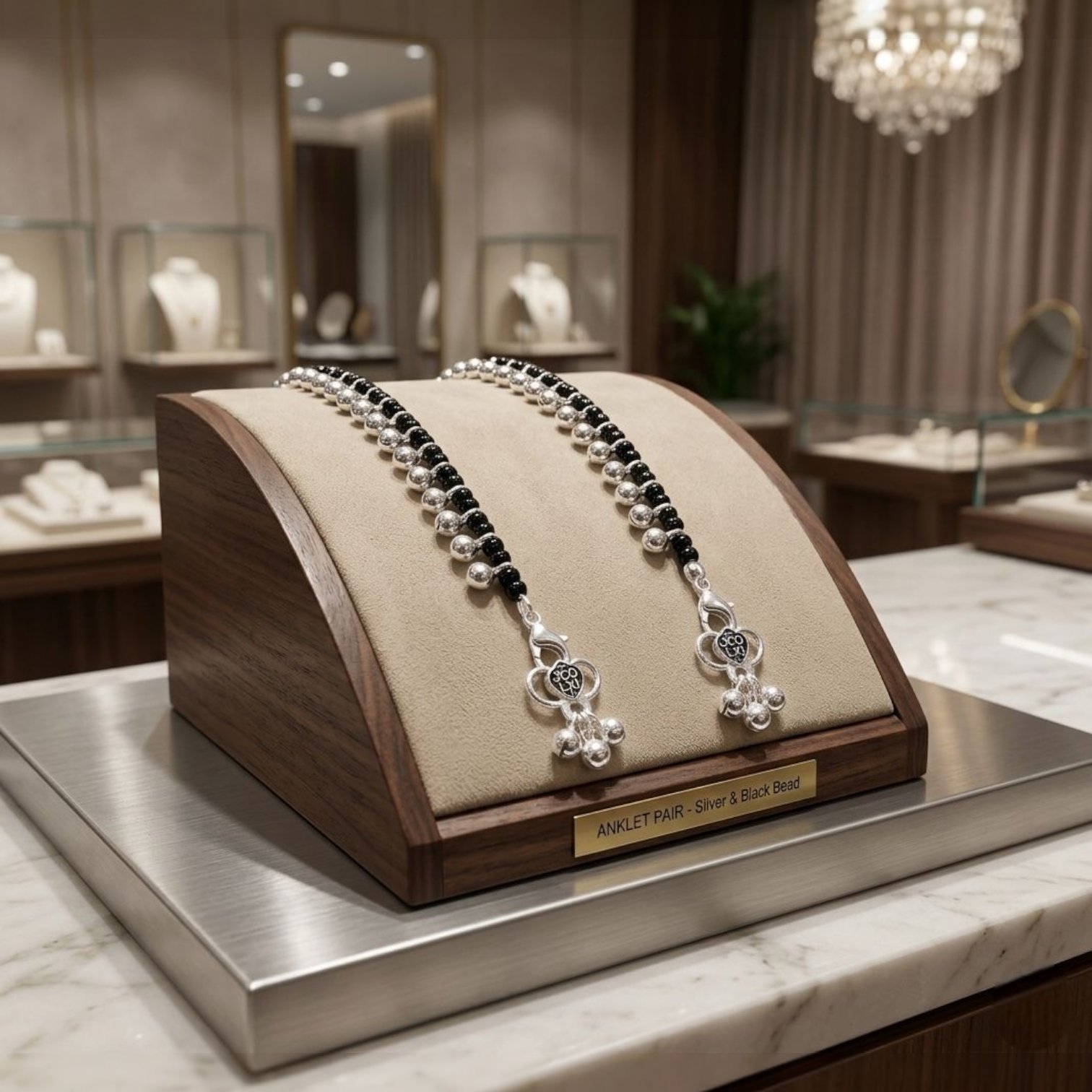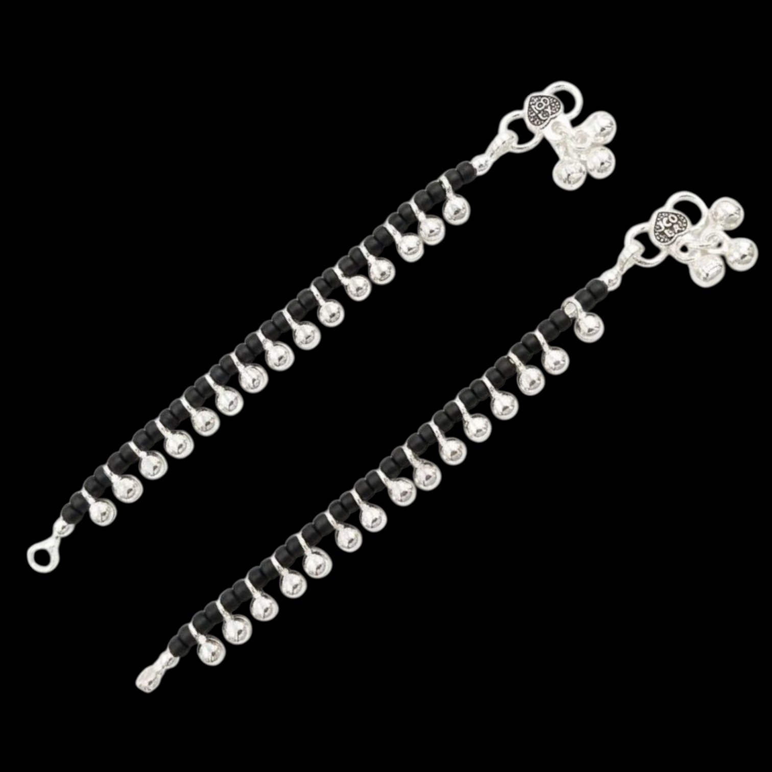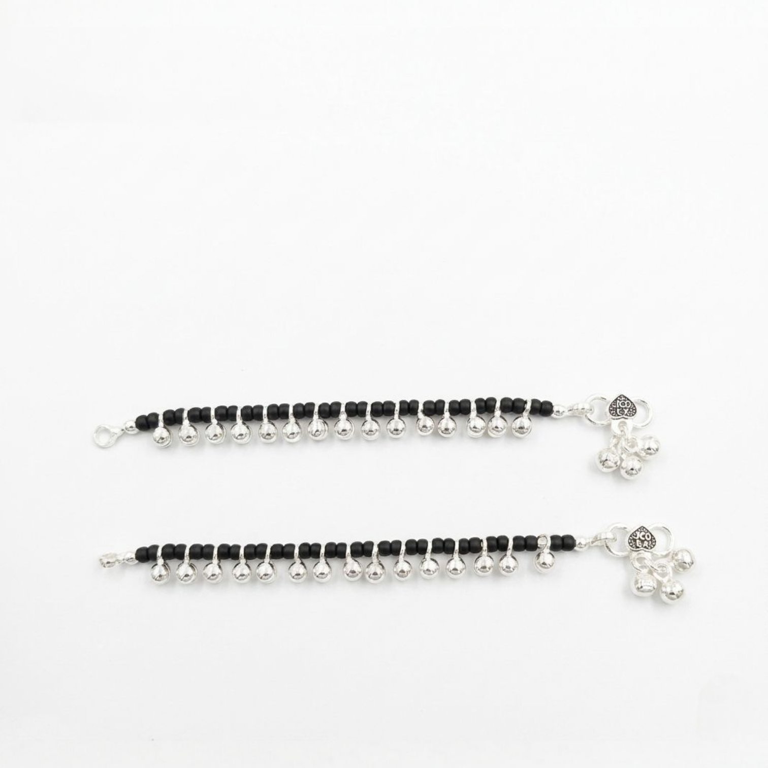 Pair of Pure Silver Nazaria Anklet – 5 inch | Pure Silver Anklet with Black Beads