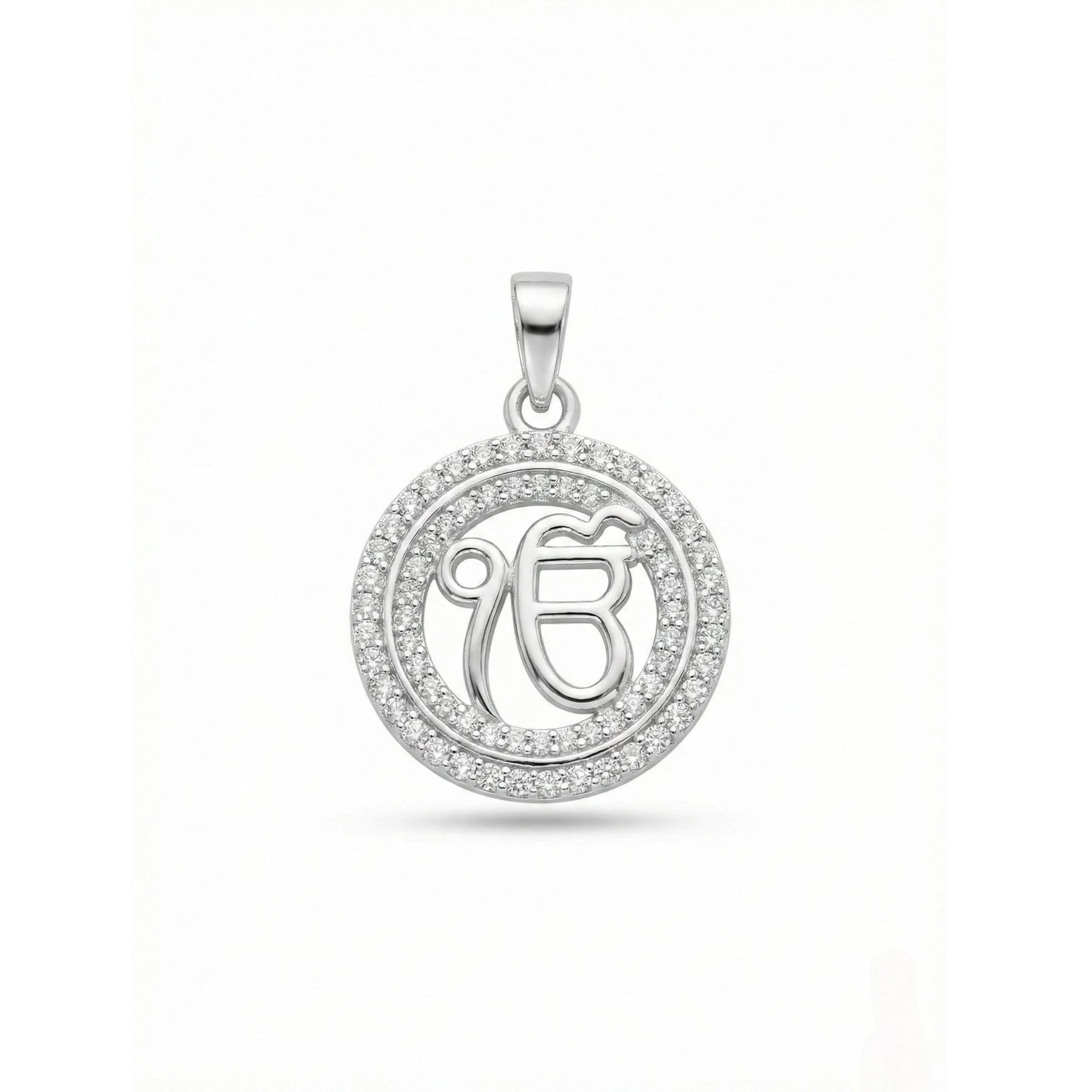 Timeless Design: Intricately crafted Ik Onkar pendant with high-precision detailing studded with zirconia stones for a luxurious finish.