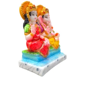A beautiful and mesmerizing Ganesha Idol 12 inch high approx 9 inches wide, with beautiful colored clothes and decorations.