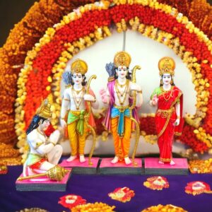 Ram Darbar comprises of Lord Ram, Laxman, Maa Sita, and Lord Hanuman. Lord Ram is also known as Maryada Purushottama meaning “the perfect man”. Lord Ram is one of the most revered incarnations of Lord Vishnu and along with Maa Sita, an incarnation of Goddess Laxmi depicts a perfect couple. Along with Lord Ram and Maa Sita, Ram Darbar portrays Laxman who is an ideal brother and Lord Hanuman who is a model devotee.