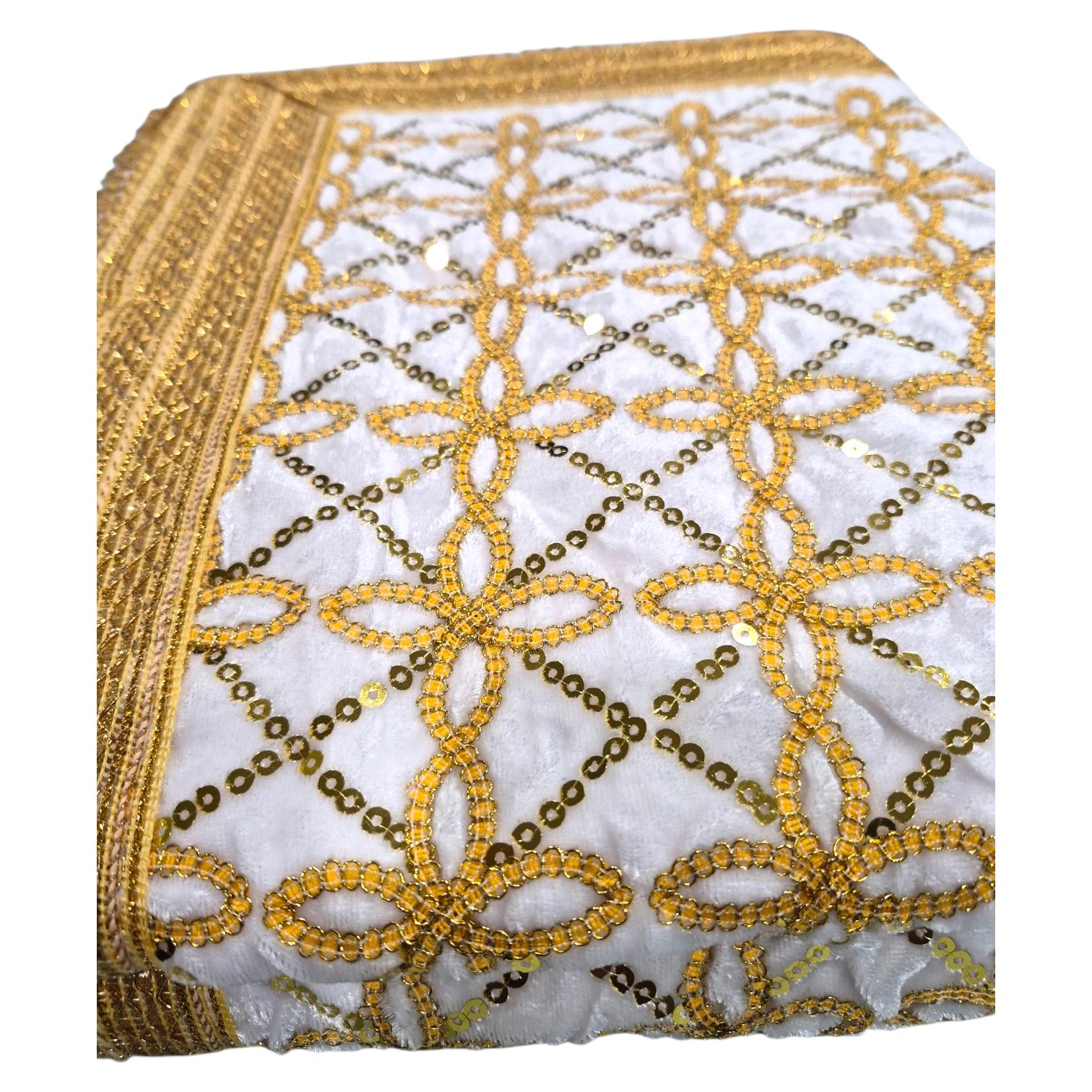 The broad embroidered border enhances the overall grace of the Rumala Sahib, making it ideal for Palki Sahib decoration, home mandir, or Gurdwara settings. The soft velvet base ensures smooth draping while maintaining durability and long-lasting quality.