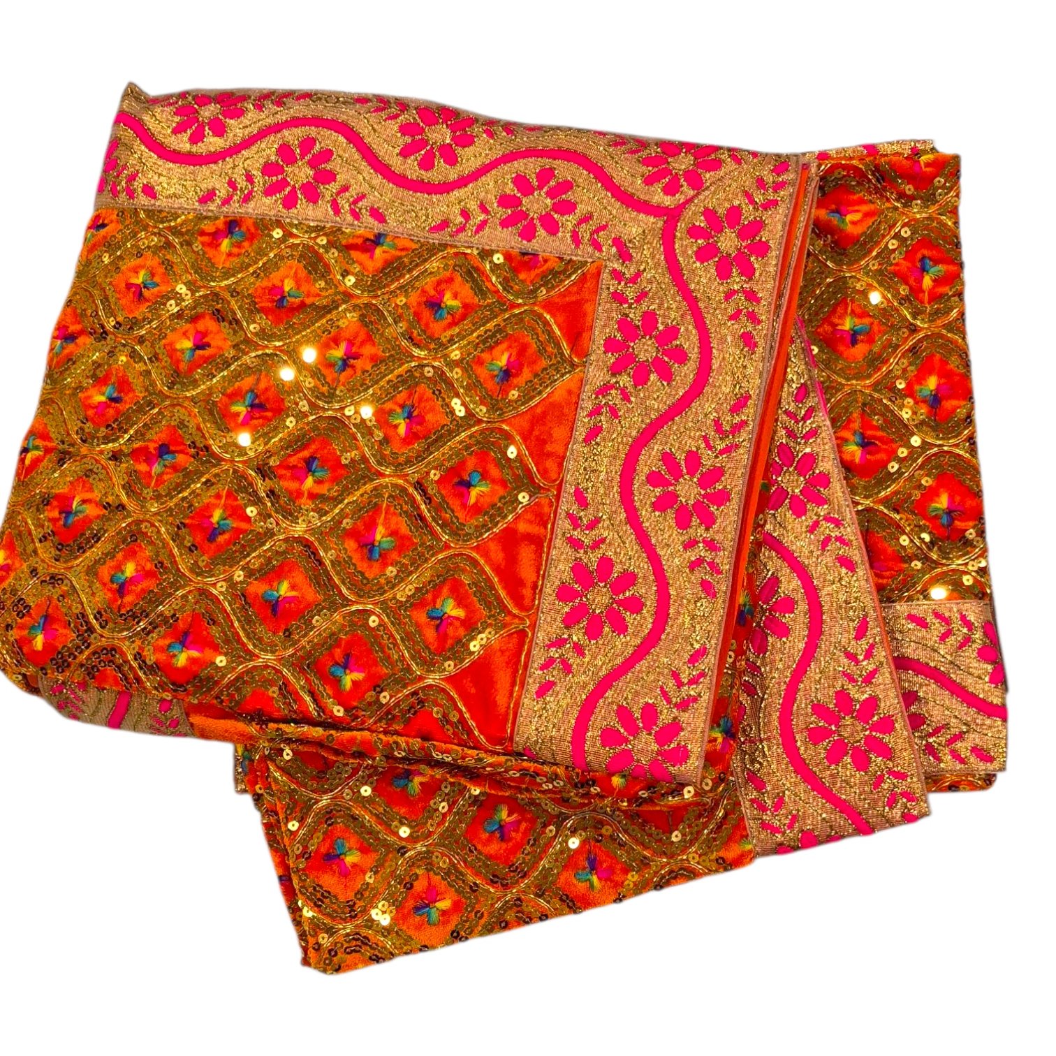 The broad embroidered border enhances the overall grace of the Rumala Sahib, making it ideal for Palki Sahib decoration, home mandir, or Gurdwara settings. The soft velvet base ensures smooth draping while maintaining durability and long-lasting quality.