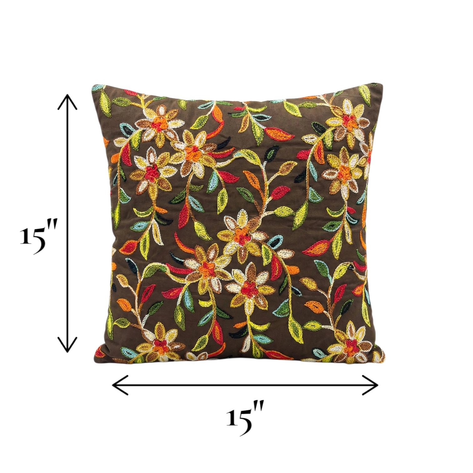 Embroidered 15×15 Inch Cushion Cover – Brown
