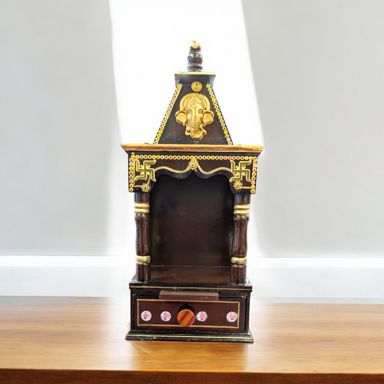 Small Wooden home Temple – Dark Brown with drawer