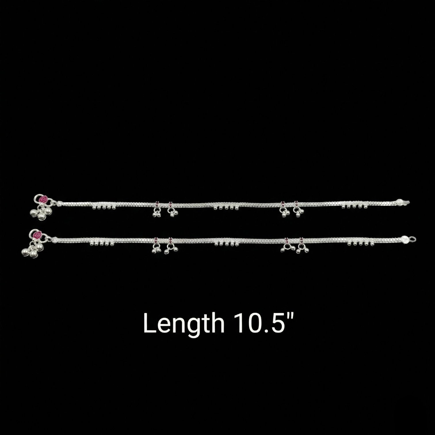 Buy this beautiful pair of 925 sterling silver anklets featuring a 10.5-inch length for a perfect fit. Adorned with a sparkling zirconia stone charm, these ankle bracelets blend tradition with modern style. A must-have accessory for any occasion!
