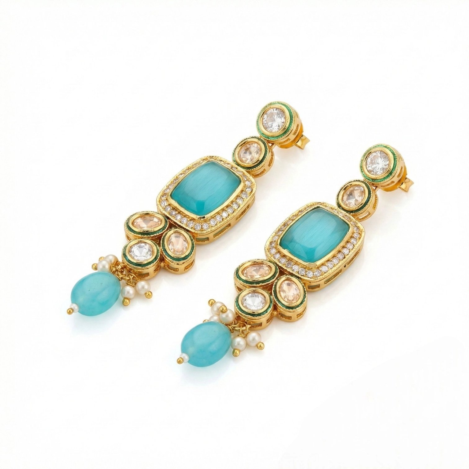 Elegant turquoise stones with turquoise beads that complement both bridal and festive outfits