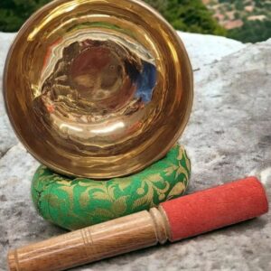 Buy online this Beginner size Tibetan Singing bowl Set – 4.5 inch Singing bowl with wooden mallet and cushion. The singing bowl is a perfect fit for someone who is starting their meditation journey.
