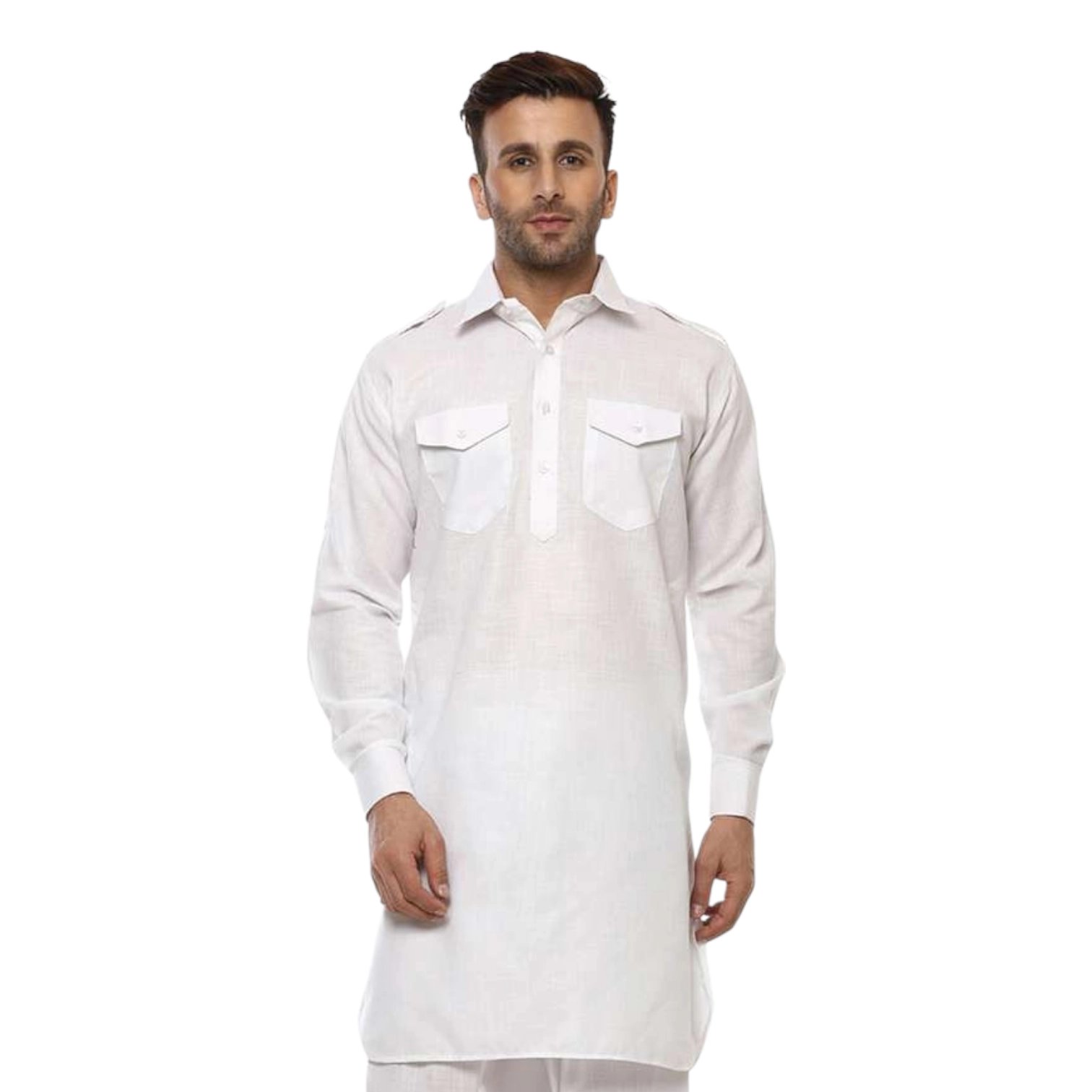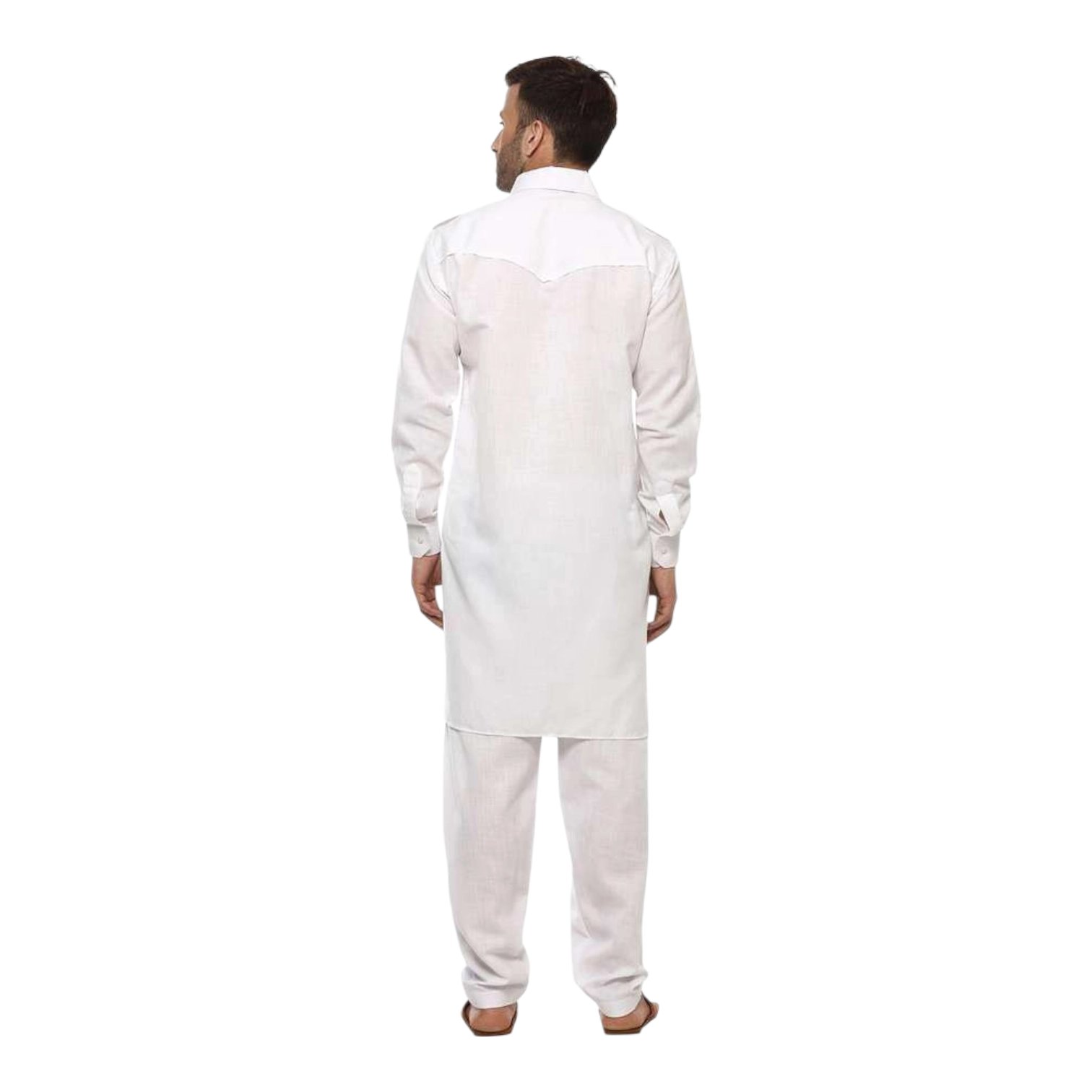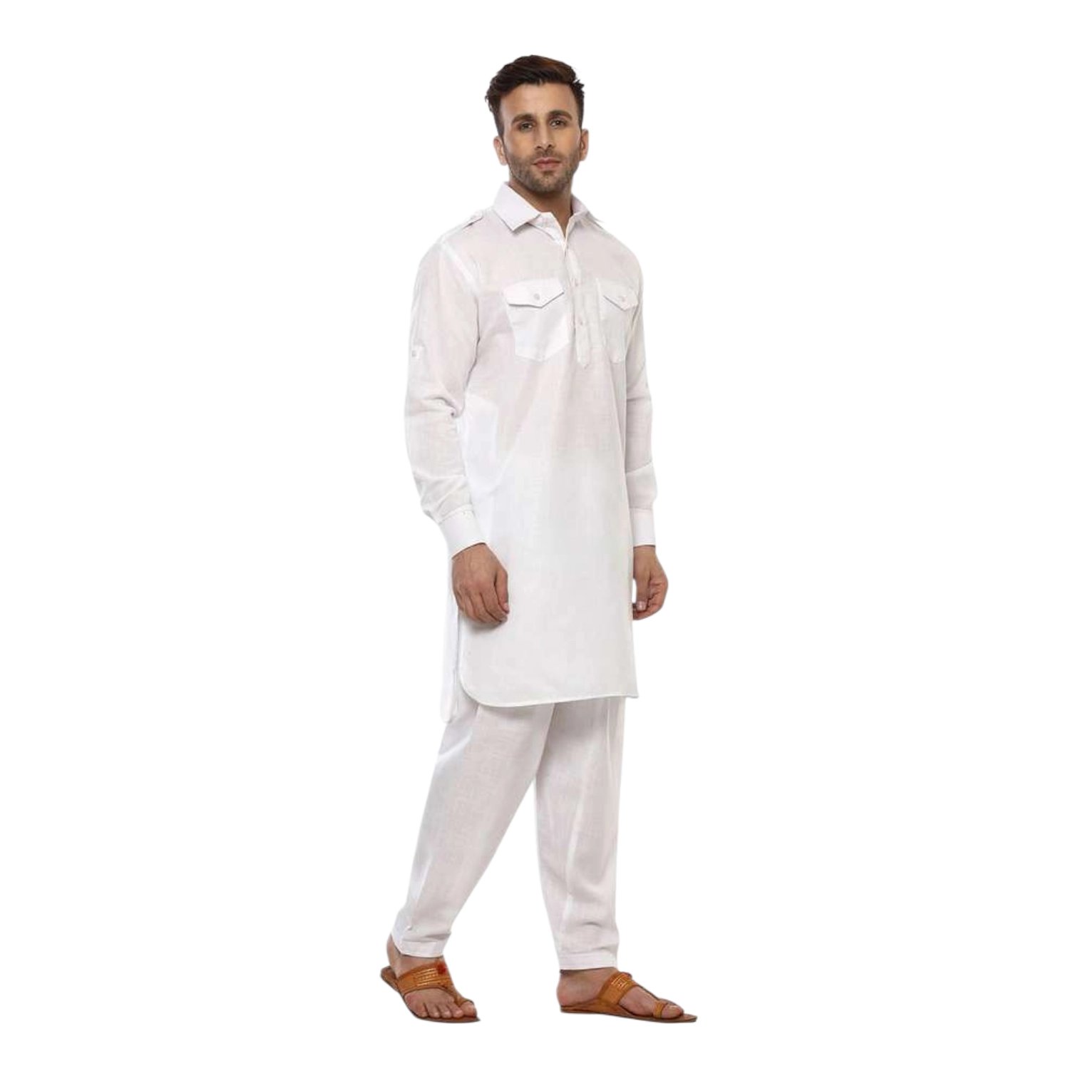 White Cotton Pathani Suit for Men | Solid white Cotton Kurta Pyjama