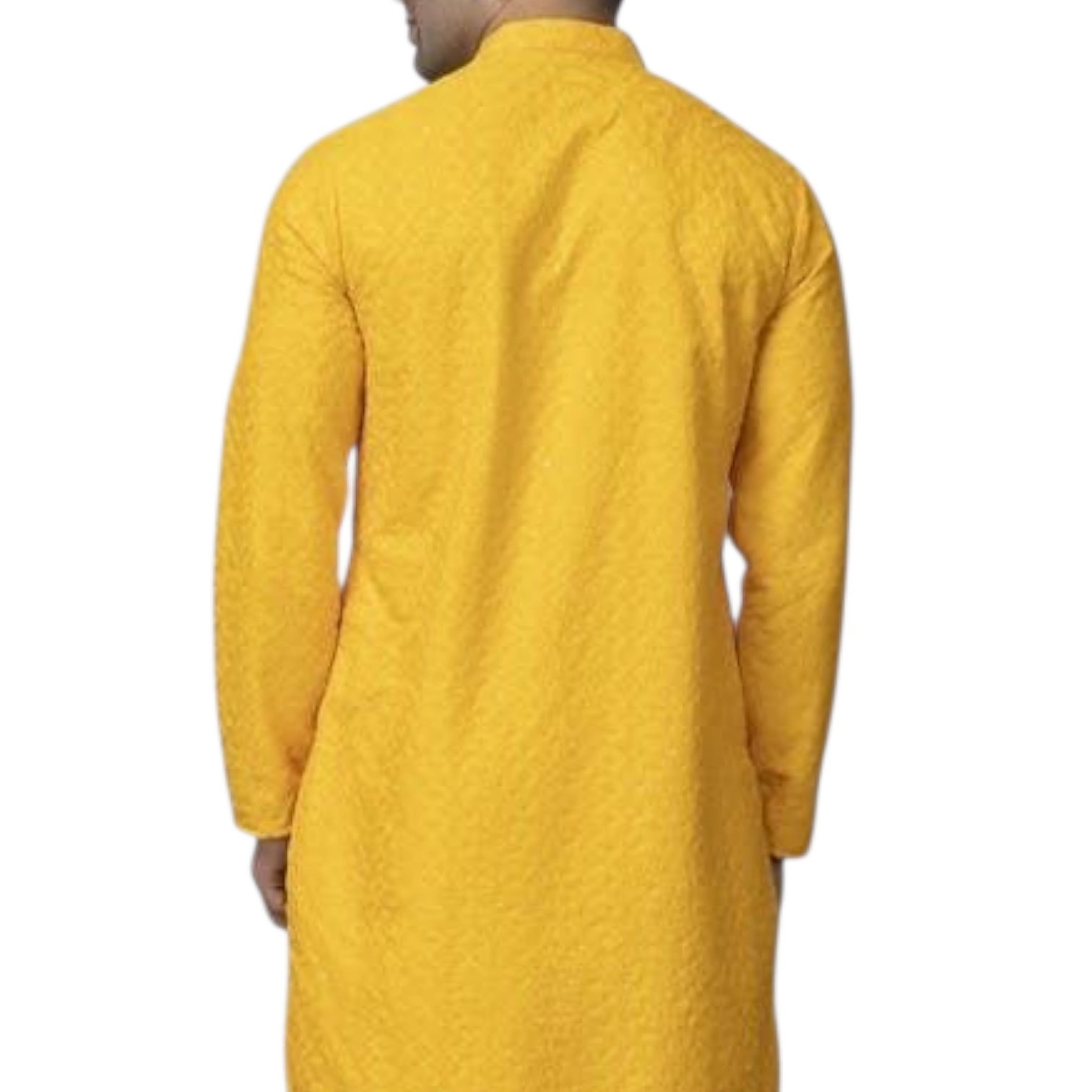 Crafted from premium cotton fabric, this kurta exudes luxury and durability, while the intricate detailing adds a touch of grandeur. Easy to maintain with a hand-wash care label, it offers convenience without compromising on style.