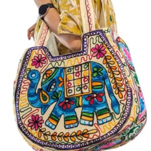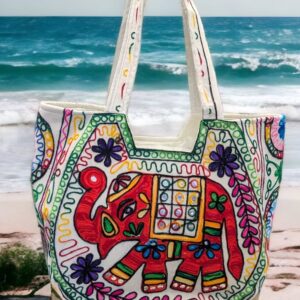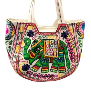 Kashmiri embroidery Tote Bag-Turquoise elephant