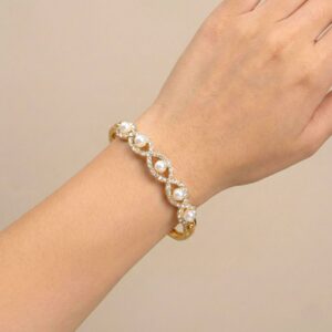 Elegant Gold-Tone Pearl & AD Stone Curved Bangle